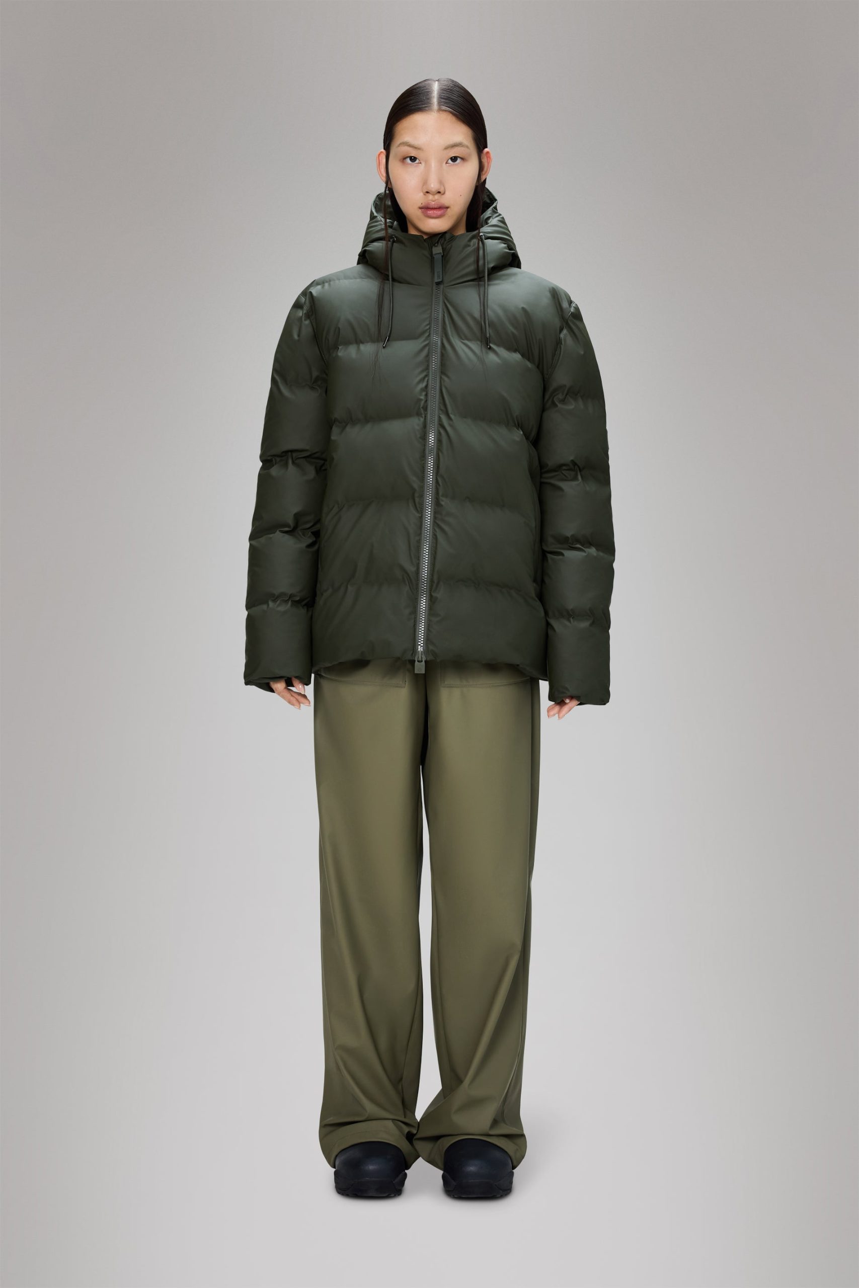 Alta Puffer Jacket is a waterproof winter jacket. Characterized by a refined silhouette and an easy-to-wear puffer aesthetic. As part of the Alta series, the Alta Puffer Jacket features signature chamber widths and pared-back details. It is designed with an inside zipped chest pocket and concealed fleece-lined side pockets. Style is finished off with an insulated hood with drawstring, keeping you warm and comfortable in the coldest climates. This elevated puffer is built on woven chamber technology and cut from Rains’ signature PU fabric with double welded seams. The finish is lightweight and durable with a smooth feel.