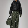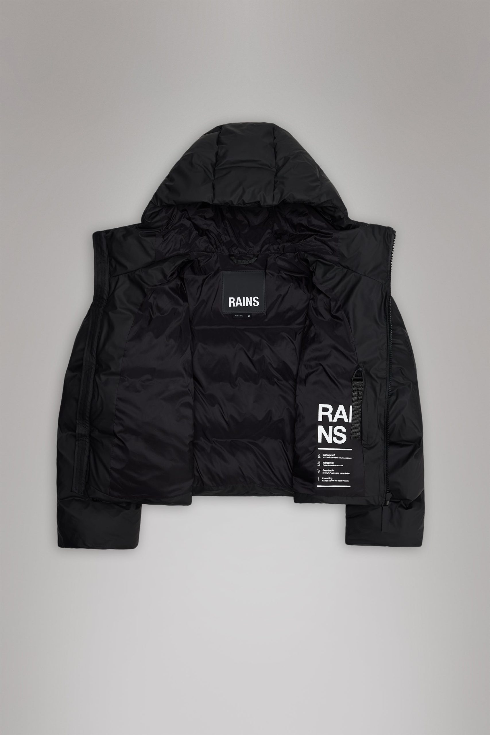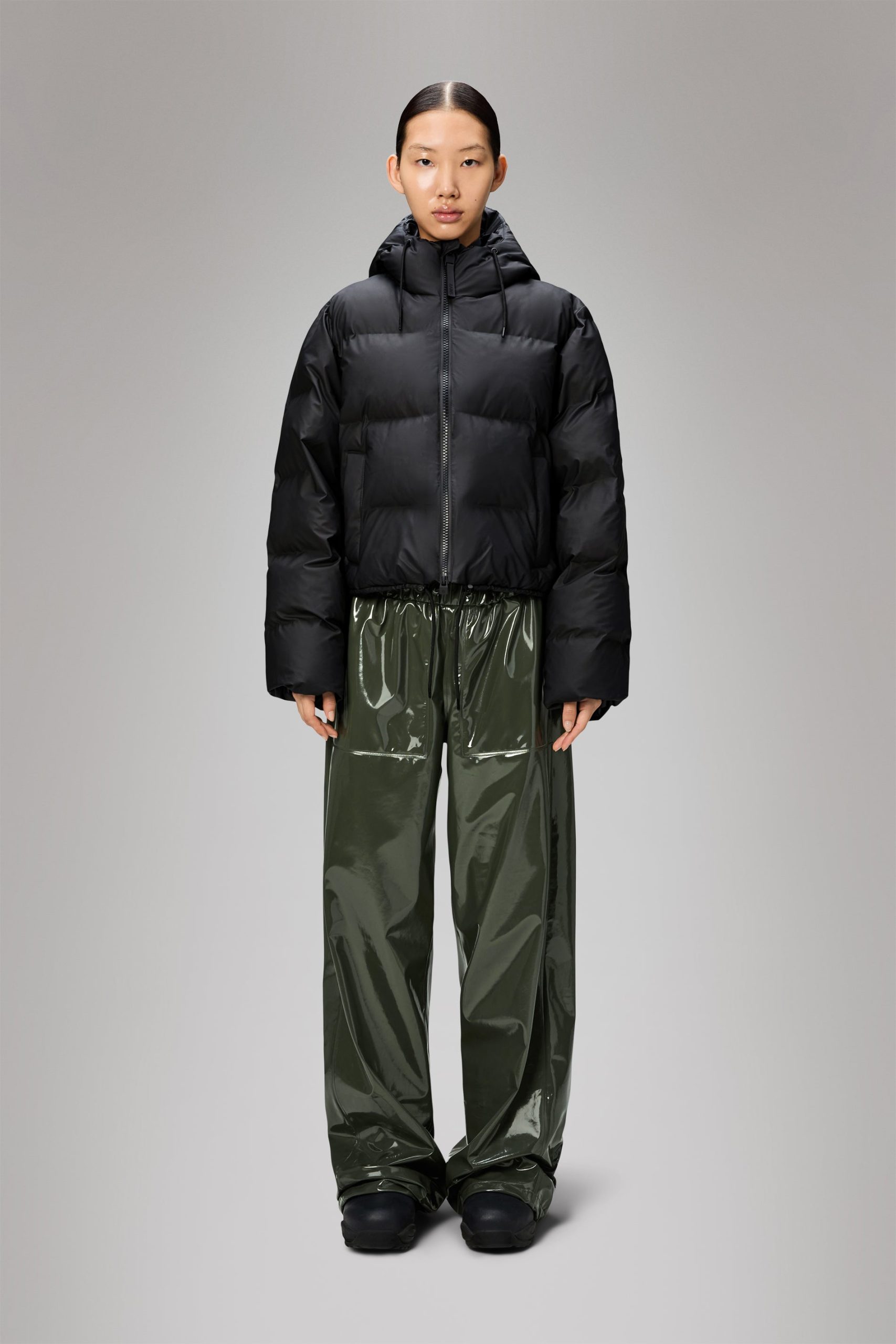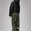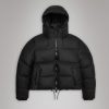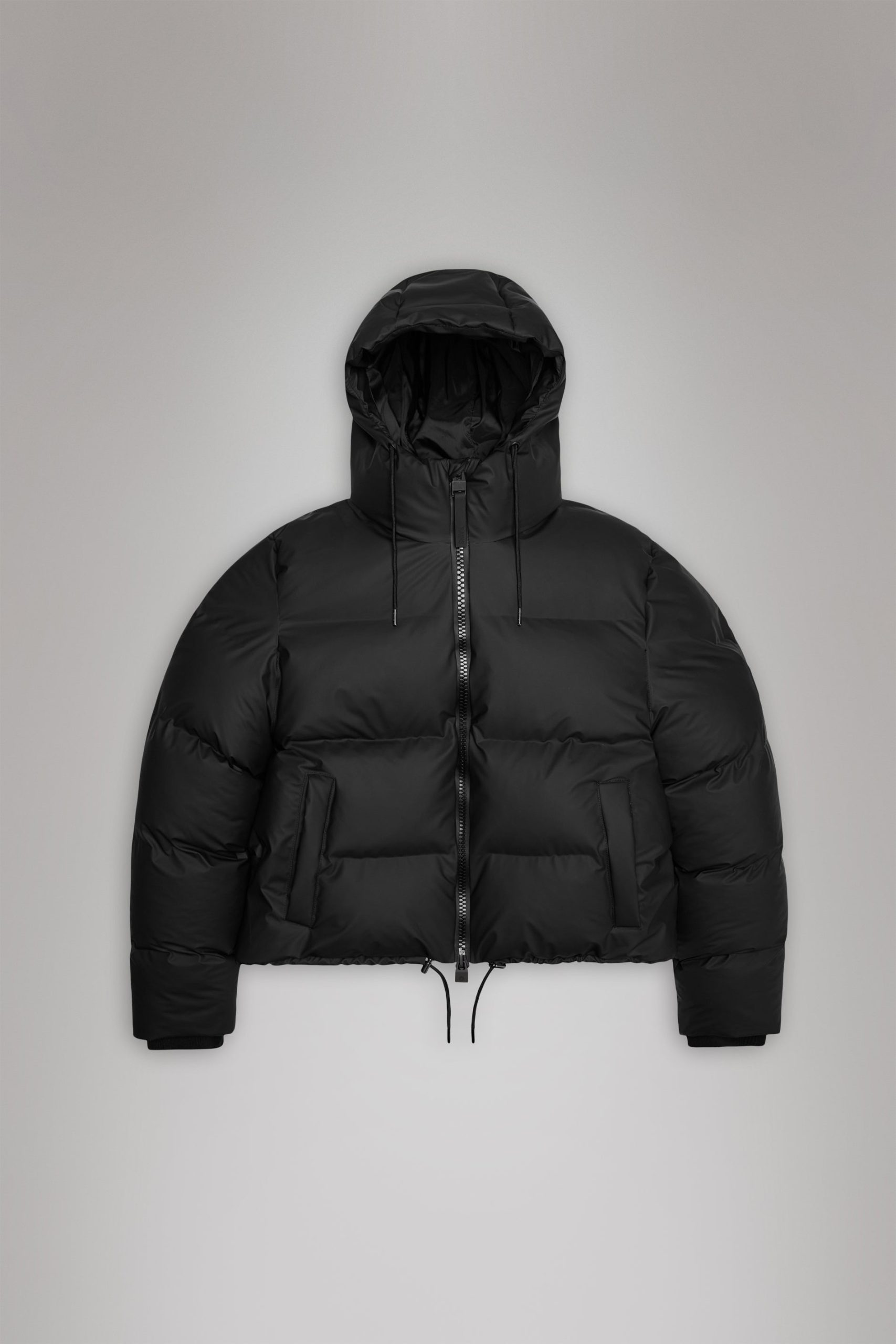 Alta Short Puffer Jacket is a waterproof winter jacket. Characterized by refined silhouettes and an easy-to-wear puffer aesthetic. The Alta Short Puffer Jacket is designed with an inside zipped chest pocket and concealed fleece-lined side pockets. As part of the Alta series, the look features signature chamber widths and pared-back details. The cropped silhouette is finished off with an insulated hood with drawstring, keeping you warm and comfortable in the coldest climates. This elevated puffer is built on woven chamber technology and cut from Rains’ signature PU fabric with double welded seams. The finish is lightweight with a smooth feel.