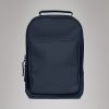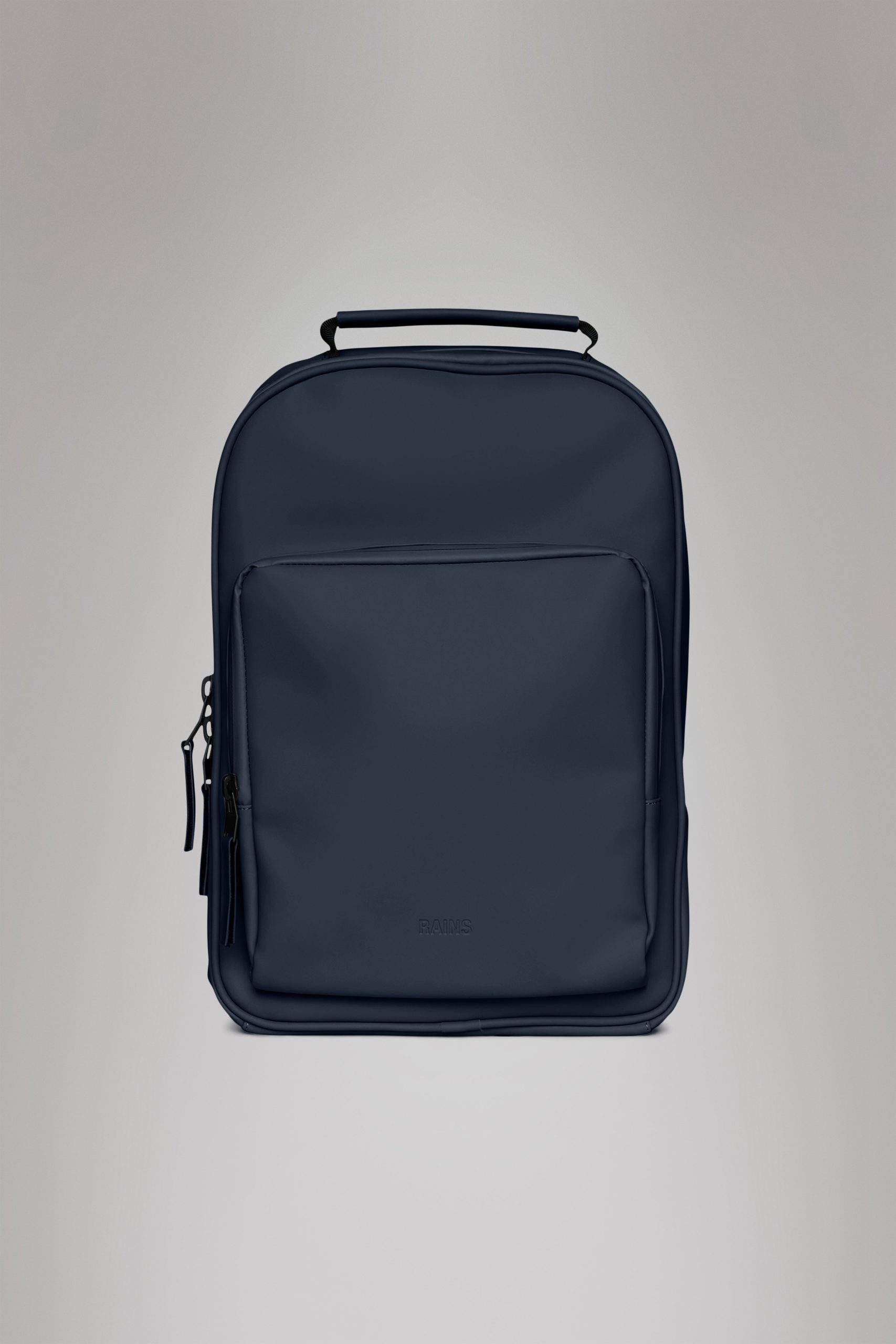 Book Daypack is a minimal silhouette in campus-ready proportions. Design is characterized by its curved top and sharp base. This waterproof rucksack features a spacious main compartment with an internal padded pocket. Design is finished off with a large front zip pocket with easy access.The laptop pocket fits a 15 laptop, making the Book Daypack a computer-ready staple for campus or work.Book Daypack is cut from Rains’ signature PU fabric, engineered for carrying strength, durability and a smooth feel.