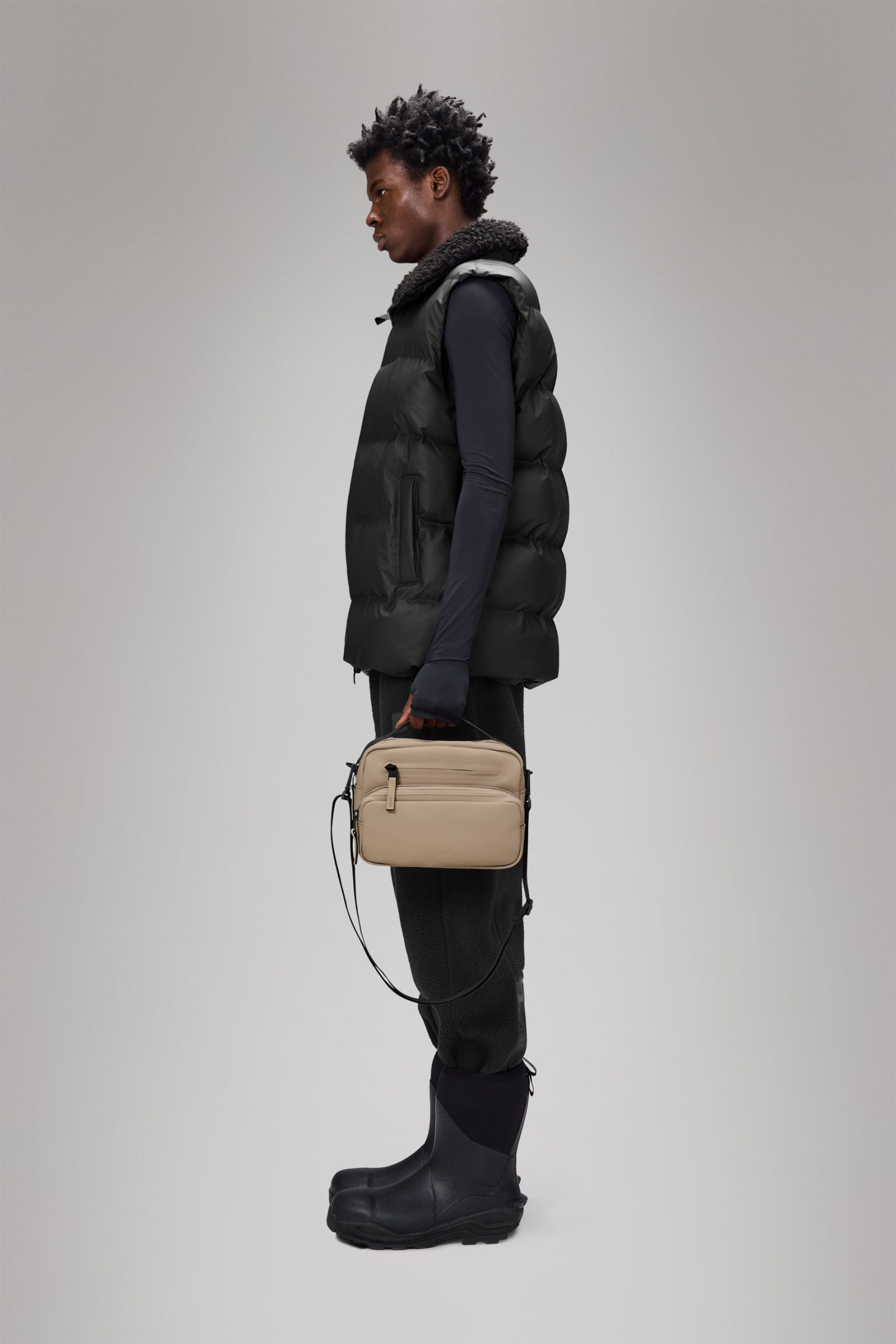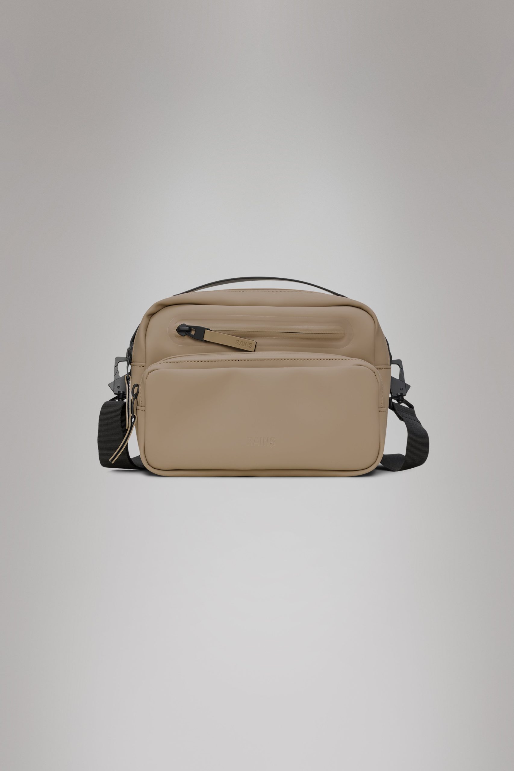 Cargo Box Bag is an upscaled version of its namesake, Box Bag. Designed to be clean and functional with various carrying options.Cargo Box Bag is a clean and functional waterproof bag, featuring a single main compartment with two internal pockets. Finished with two front zip pockets and a back zip pocket for easy organizing.This design lives up to its boxy name and delivers multiple options for both styling and use. It can be carried over the shoulder, as a crossbody bag or as a handbag. Topped off with a detachable adjustable webbing shoulder strap and TPU carry handle.Cargo Box Bag is cut from Rains’ signature PU fabric, engineered for carrying strength, durability and a smooth feel.