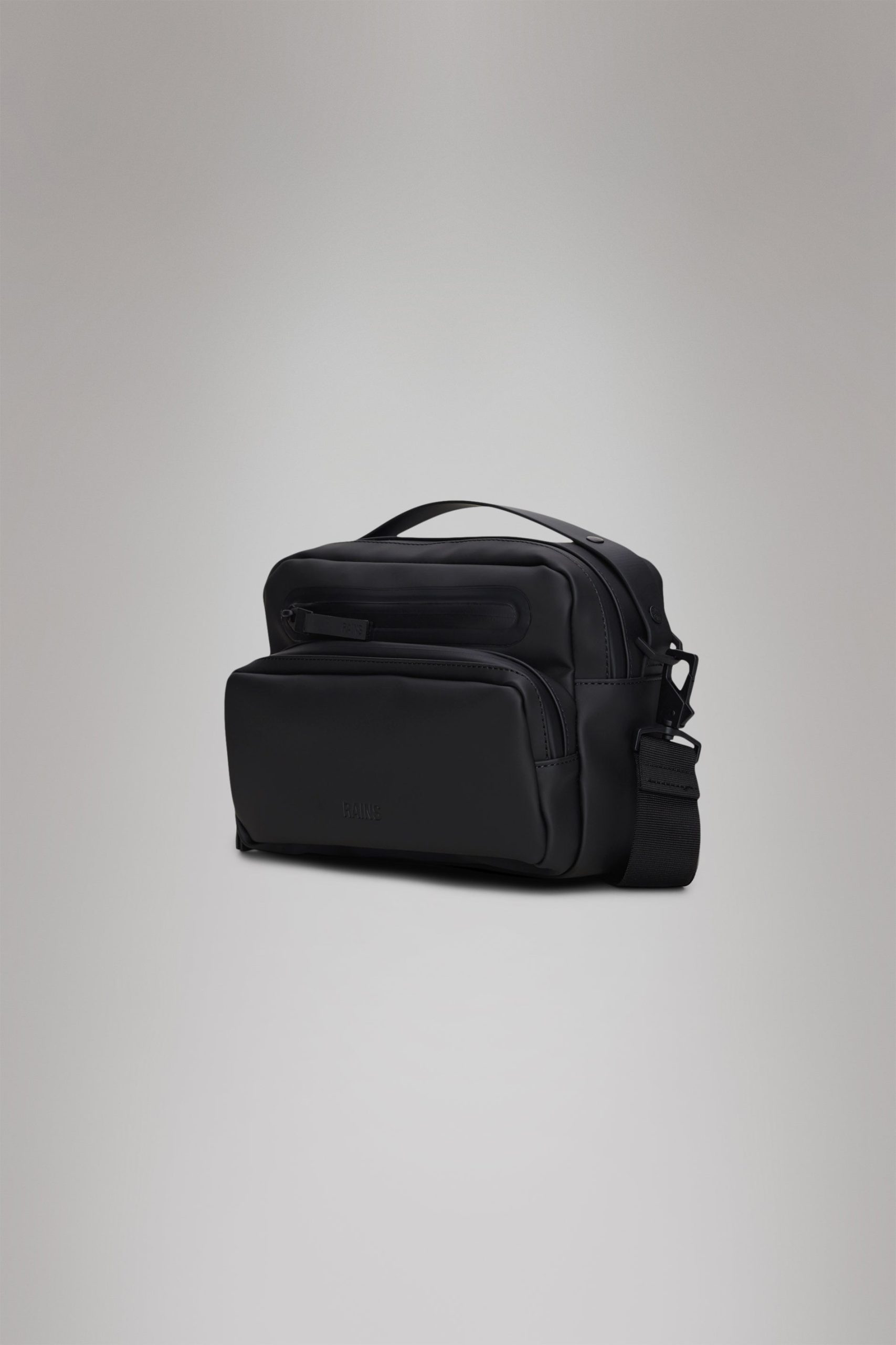 Cargo Box Bag is an upscaled version of its namesake, Box Bag. Designed to be clean and functional with various carrying options.Cargo Box Bag is a clean and functional waterproof bag, featuring a single main compartment with two internal pockets. Finished with two front zip pockets and a back zip pocket for easy organizing.This design lives up to its boxy name and delivers multiple options for both styling and use. It can be carried over the shoulder, as a crossbody bag or as a handbag. Topped off with a detachable adjustable webbing shoulder strap and TPU carry handle.Cargo Box Bag is cut from Rains’ signature PU fabric, engineered for carrying strength, durability and a smooth feel.