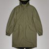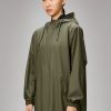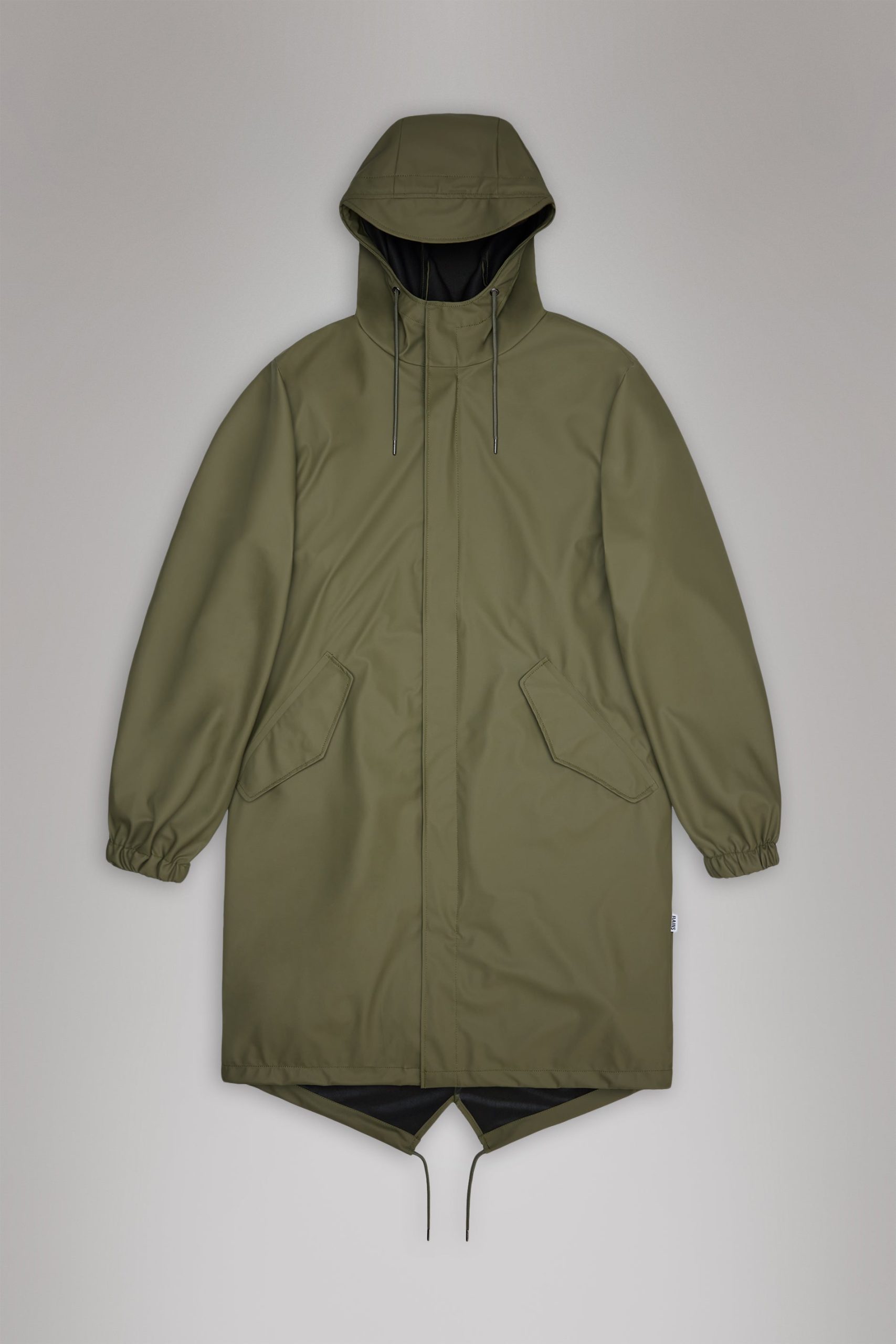 Fishtail Parka is a unisex raincoat. Characterized by its pared-back aesthetic and drawstring fishtail hem in parka-length. This design features utility-inspired pockets, vented back yoke and a hood with built-in cap and drawstring. Style is finished with elasticated cuffs for a tighter fit around wrist.Fishtail Parka has a casual fit with an elegant drape, making it a clear cut raincoat for daily commutes. The coated zip closure is concealed by a placket with snap fastenings.This rain jacket is cut from Rains’ signature PU fabric and features welded seams. The finish is lightweight with a smooth feel.
