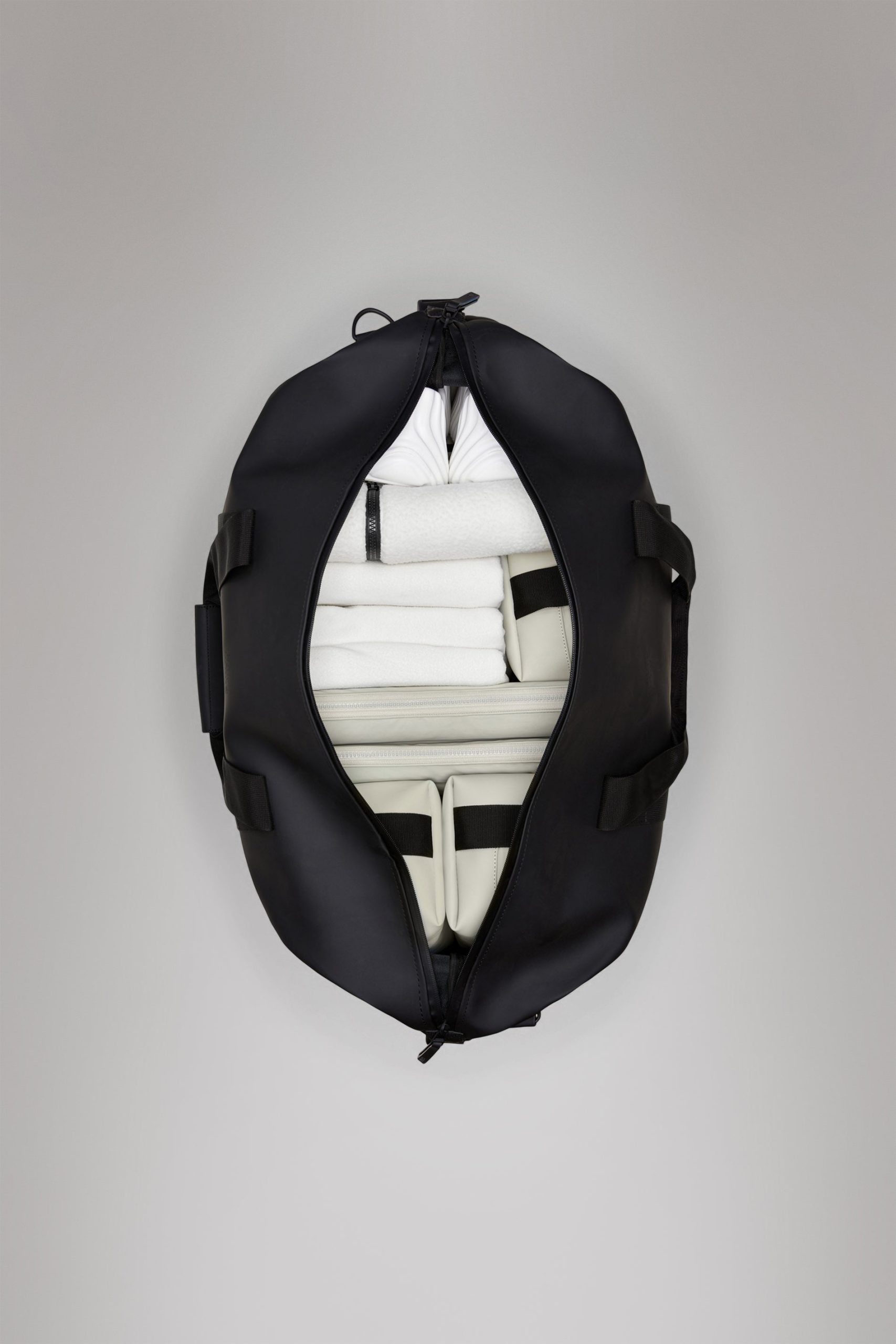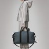 Hilo Weekend Bag is Rains’ take on the essential overnight bag – one of three available sizes. Hilo Weekend Bag is a clean and contemporary travel-favorite, balancing Rains’ waterproof fabric with signature straps and hardware details.Open the coated full-length zip to find a spacious single main compartment – with plenty of room for clothing, tech and more for a work trip or a weekend getaway. Once packed, secure belongings via the silhouette’s side-mounted compression straps. The design is finished with webbing carry handles, with comfort sleeve, and attachment rings for an included detachable shoulder strap. Hilo Weekend Bag is cut from Rains’ signature waterproof PU fabric, engineered for carrying strength, durability, and a smooth feel.