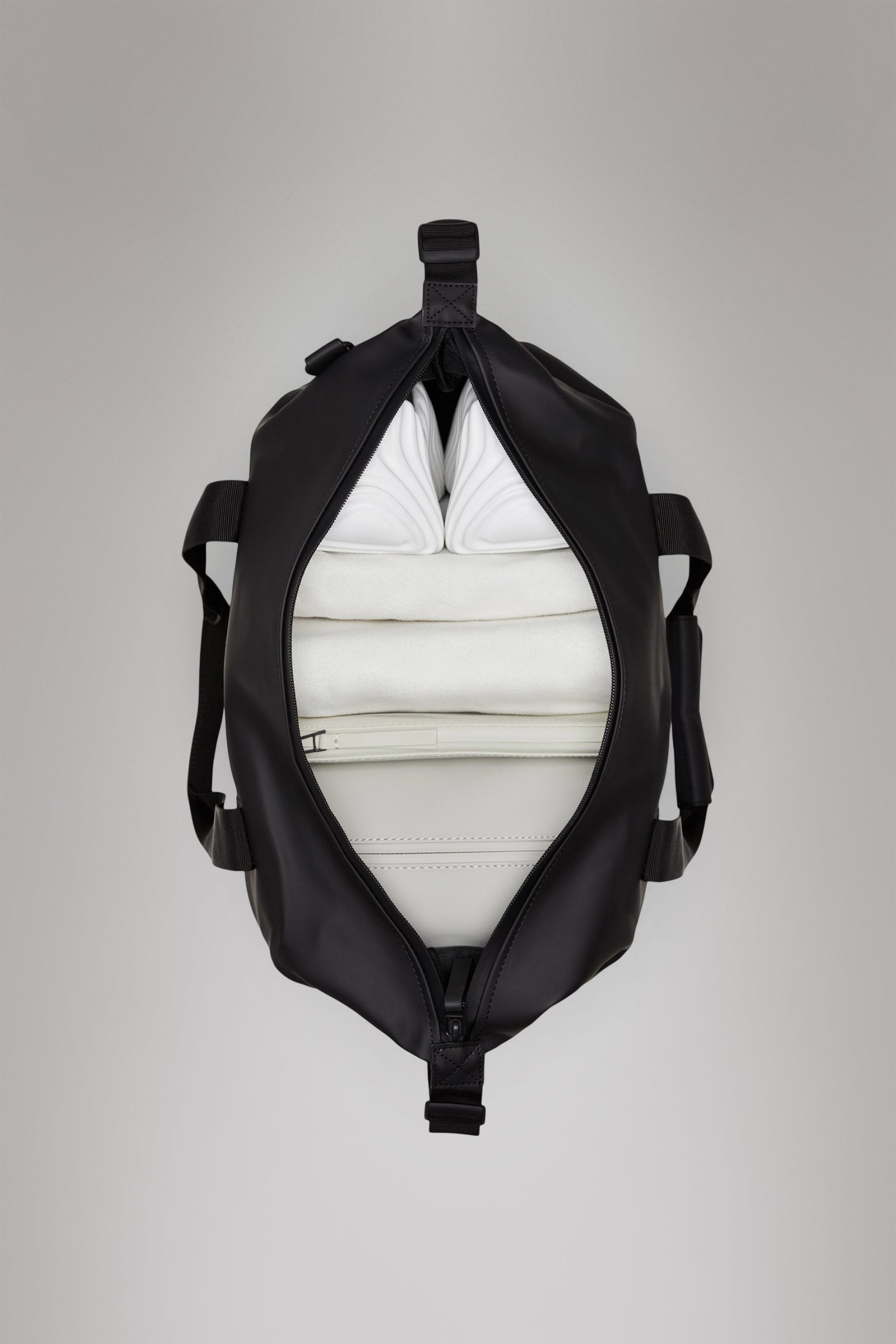 Hilo Weekend Bag Small is Rains’ take on the essential overnight bag – the smallest of three sizes. Hilo Weekend Bag Small is a true favorite when traveling light. The design is clean and contemporary, balancing Rains’ waterproof fabric with signature strap and hardware details. Open the coated full-length zip to find a spacious single main compartment – with room for clothing, tech and more. Once packed, secure belongings via the silhouette’s side-mounted compression straps. The design is finished with webbing carry handles, with comfort sleeve, and attachment rings for an included detachable shoulder strap. Hilo Weekend Bag Small is cut from Rains’ signature waterproof PU fabric, engineered for carrying strength, durability, and a smooth feel.