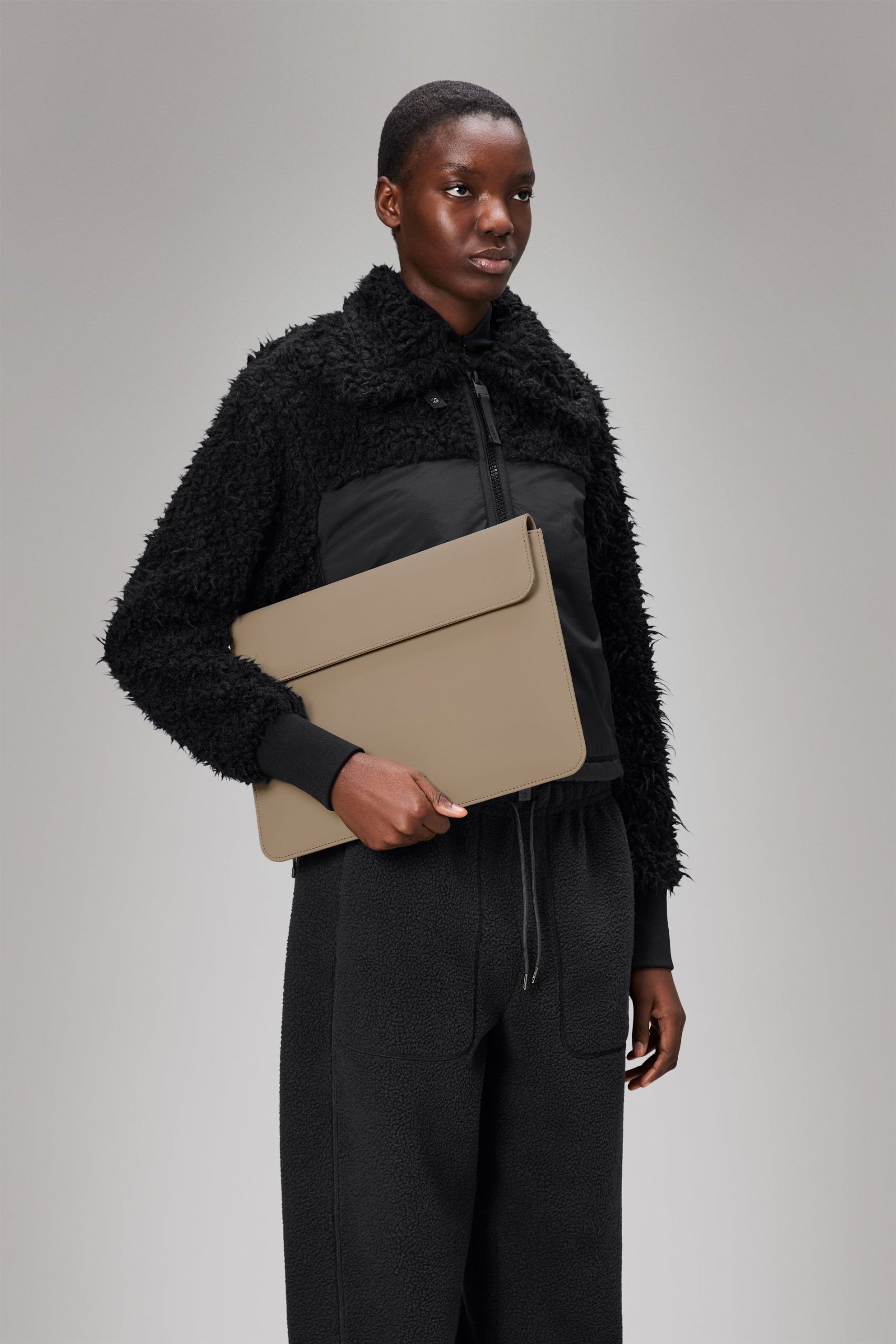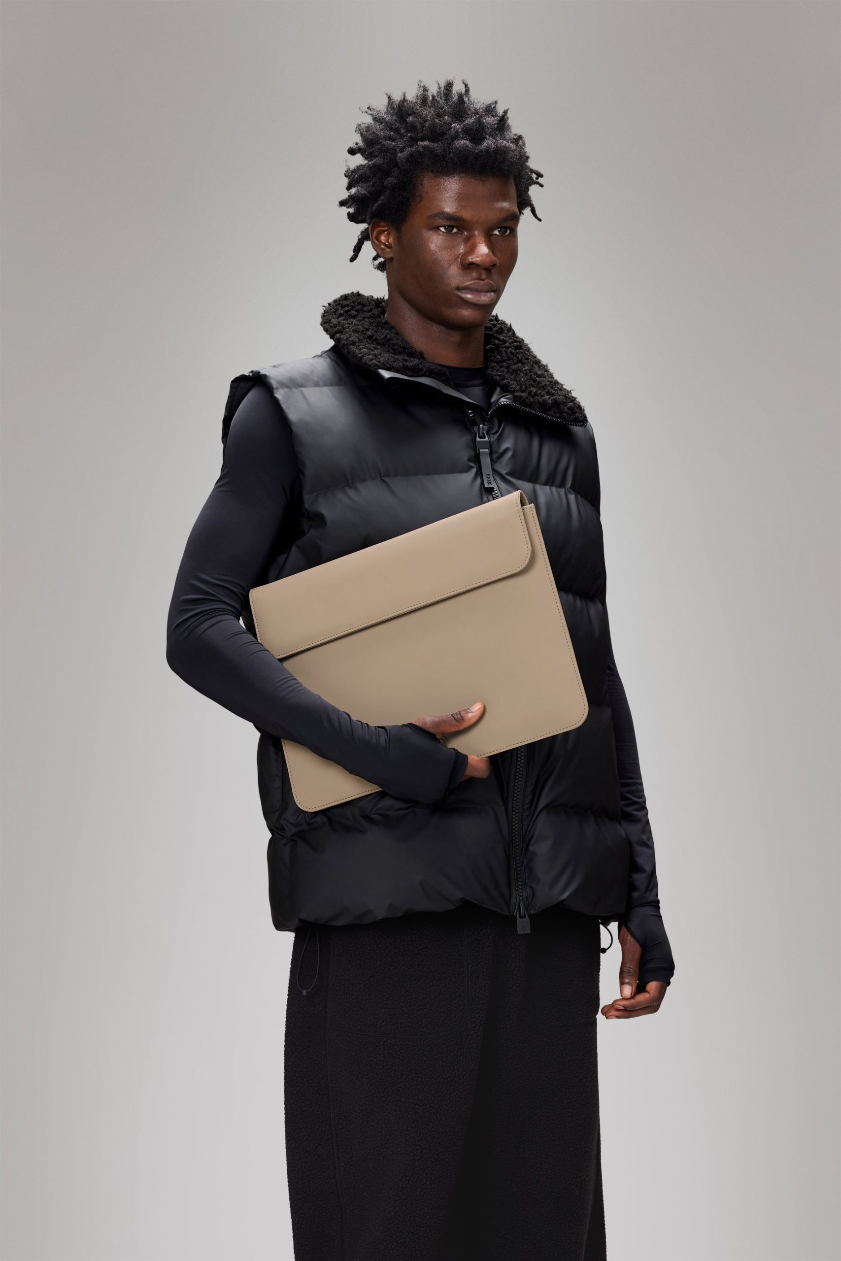 Laptop Portfolio is for anyone searching for a 14 waterproof laptop sleeve with a pared-back aesthetic.This sleeve pairs a semi-rigid shell with a soft-lined main compartment, creating a protective layer for most 14 laptops. A timeless design for transporting tech safely from point A to Z.Details include a flap closure fastened with concealed magnet straps.Laptop Portfolio is cut from Rains’ signature PU fabric, engineered for carrying strength, durability and a smooth feel.