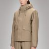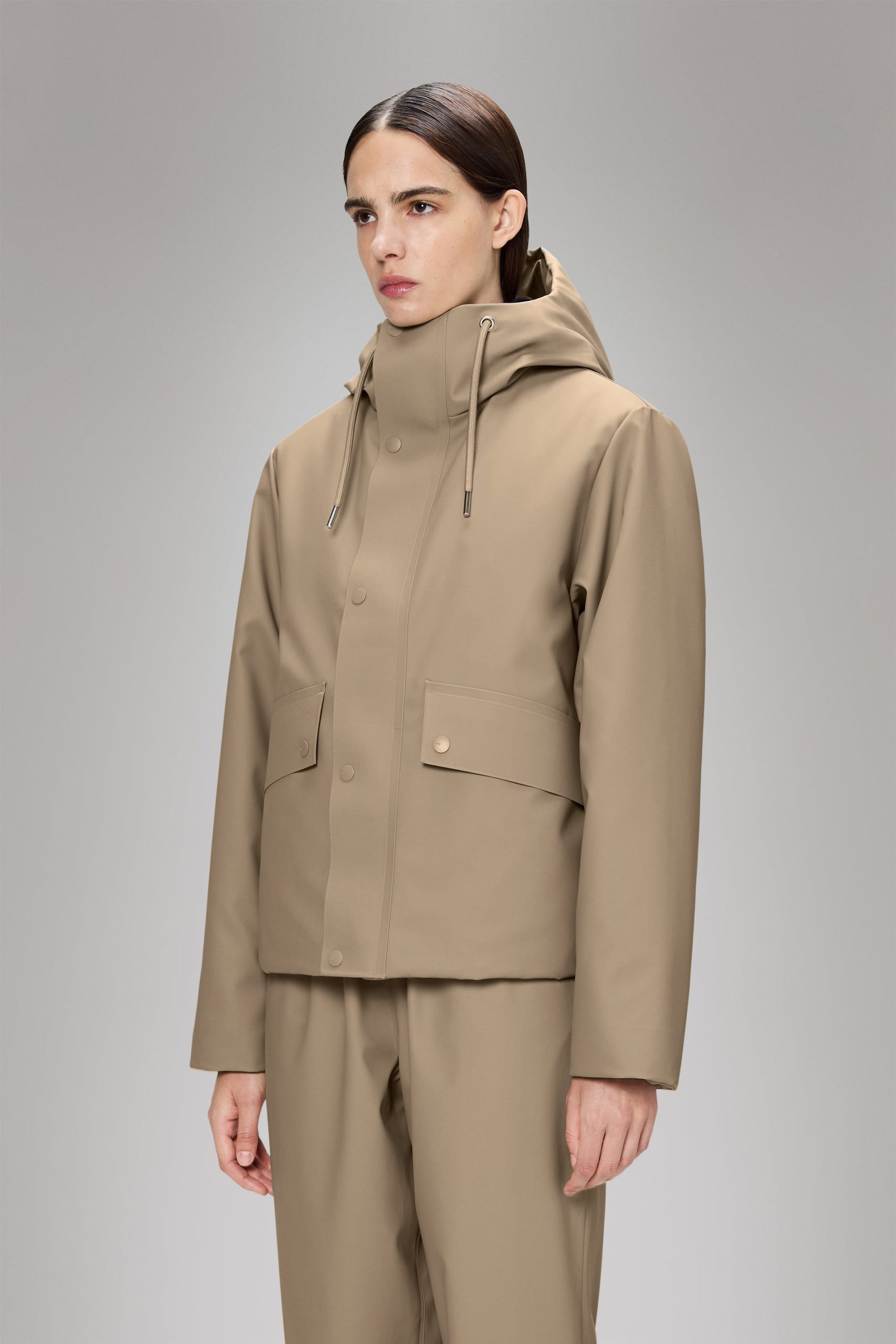 Nome Short W Parka is a transeasonal piece with an urban aesthetic. This jacket delivers sharp edges in a female fit. This parka style features welt pockets hidden below heat pressed pocket flaps and slip-in pockets at the side seam. The silhouette is topped by an insulated hood with chunky tie cords for a bold look. The Nome collection fills the gap between light and heavy thermal jackets. This parka has a slightly shorter fit with flat padded insulation creating your go-to jacket for city commutes in between seasons. The waterproof jacket is cut from Rains’ signature PU fabric with a strong and durable woven backside. The finish is clean with a sharpened look and a smooth feel.