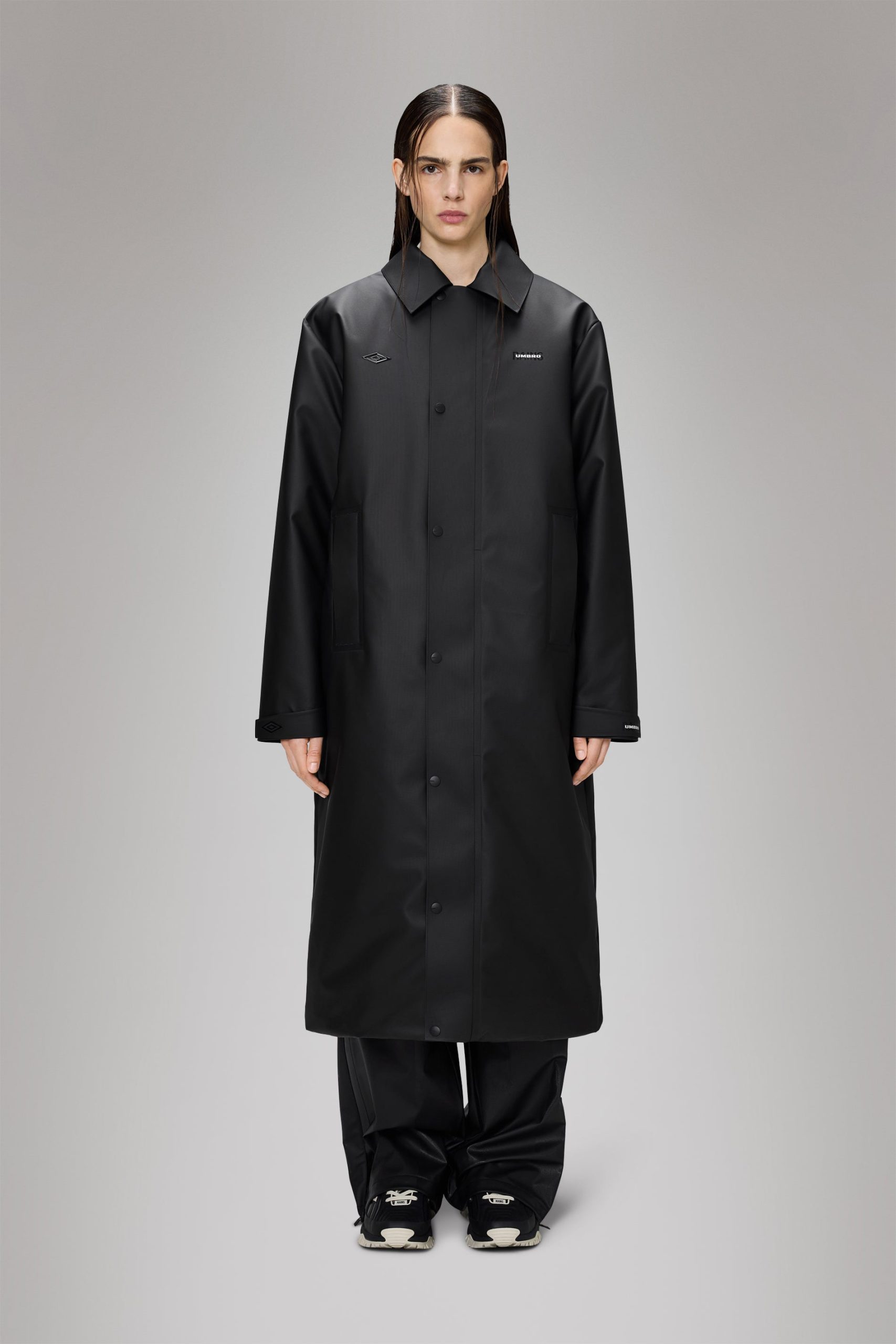 APPLY PRESSURE. The first official Rains x Umbro collaboration quietly subverts the football uniform.Inspired by legendary overcoats seen stalking sidelines everywhere, the Rains x Umbro Manager Coat is the correct game day decision—with a minimalist aesthetic, weather-ready performance, a relaxed fit, long silhouette, and mac collar for an elevated feel. Secured with welded seams and Rains’ signature waterproof PU fabric. The finish is subtly textured and grippy, referencing classic football surfaces.