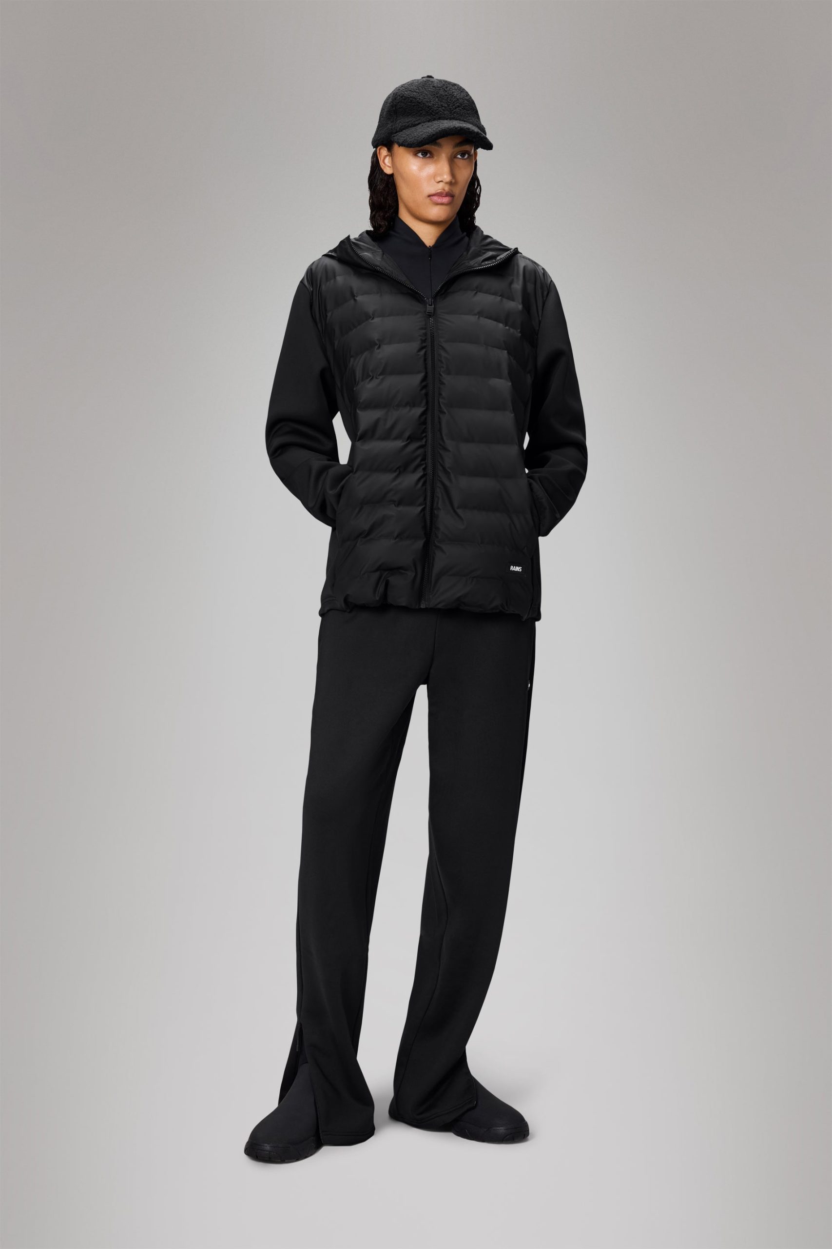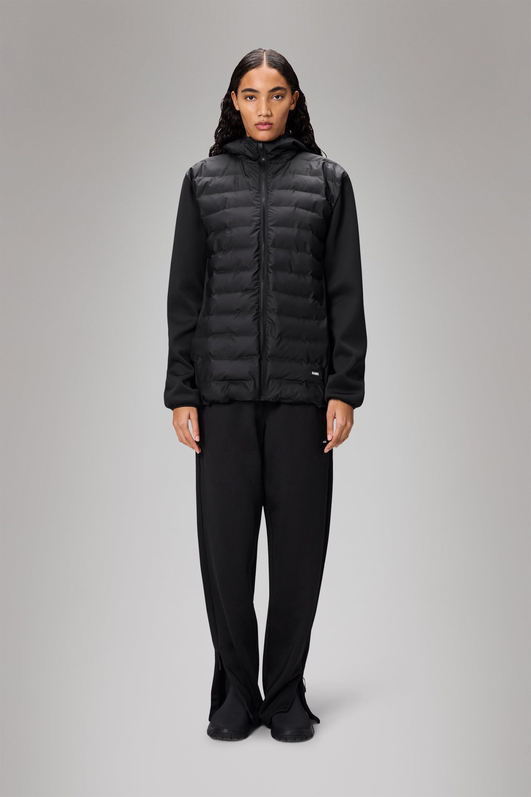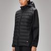 Safi Hybrid Jacket is a versatile style in a sporty aesthetic. Works as an outerwear layer in a heavier fleece quality with signature chamber details. Safi Hybrid Jacket is a hooded silhouette, perfect to keep you warm in milder weather. Features include a zip closure at front, a paneled hood and an elastic string adjustment at the hem. The design is finished with a rubberized branding detail. This heavyweight fleece jacket delivers clean proportions. The puffers at hood and front creates the ultimate hybrid of top layer and mid layer. Safi Hybrid Jacket is cut from heavyweight fleece with a smooth surface. This style is combined with panels of waterproof signature PU fabric.