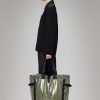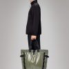 Sibu Shopper Bag is a dependable and versatile classic. It’s cut from technical polyester and coated for all-weather protection.Sibu Shopper Bag is designed with intention, keeping its weight low and practicality high. This shopper is characterized by a neatly organized compartment with a smaller mesh pocket for loose essentials. In need of more space adjust the sturdy storage loops and compression straps to expand the volume of the bag. Externally, the design is fitted with a front slip pocket, signature rubberized buckles and logo-jacquard webbing trims. Sibu Shopper Bag is cut from Rains’ technical polyester finished with a waterproof TPU coating. The design is sleek and lightweight with great durability