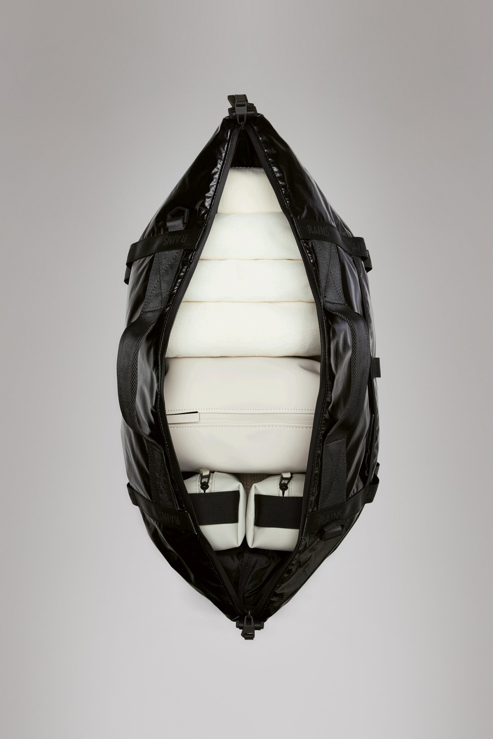 Sibu Weekend Bag is a light and compact travel-favorite. It’s cut from durable nylon-ripstop and coated for all-weather protection.Sibu Weekend Bag is designed with intention, keeping its weight low and practicality high. This weekend bag is characterized by a compact, yet spacious main compartment with a smaller mesh pocket for loose essentials. In need of more space — just unclip the carabiners on the side to expand the volume of the bag.Externally, the design is fitted with sturdy webbing storage loops, a key loop with snap hook and a zipped pocket at the front. Sibu Weekend Bag can be carried in the removable crossbody strap or in the carry handles. Sibu Weekend Bag is cut from technical nylon-ripstop fabric finished with a water-repellent TPU coating. The design is sleek and lightweight with great durability.