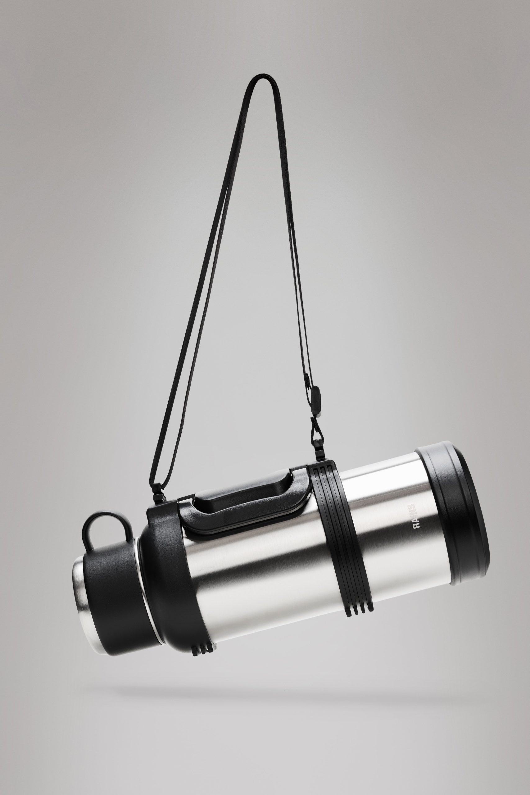 HOME AWAY is a call to the wild—featuring an industrial-inspired flask built for days on the move.The 2000ml Vacuum Flask is engineered to keep up—holding heat for 24 hours and keeping drinks cold for 72. Crafted from stainless steel with a durable polypropylene lid, it’s a high-capacity essential for long days and adventurous plans.The design includes a detachable cup with subtle branding. It’s BPA-free, dishwasher safe, and leak-proof—backed by Rains’ Scandinavian design expertise.