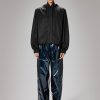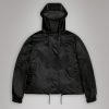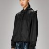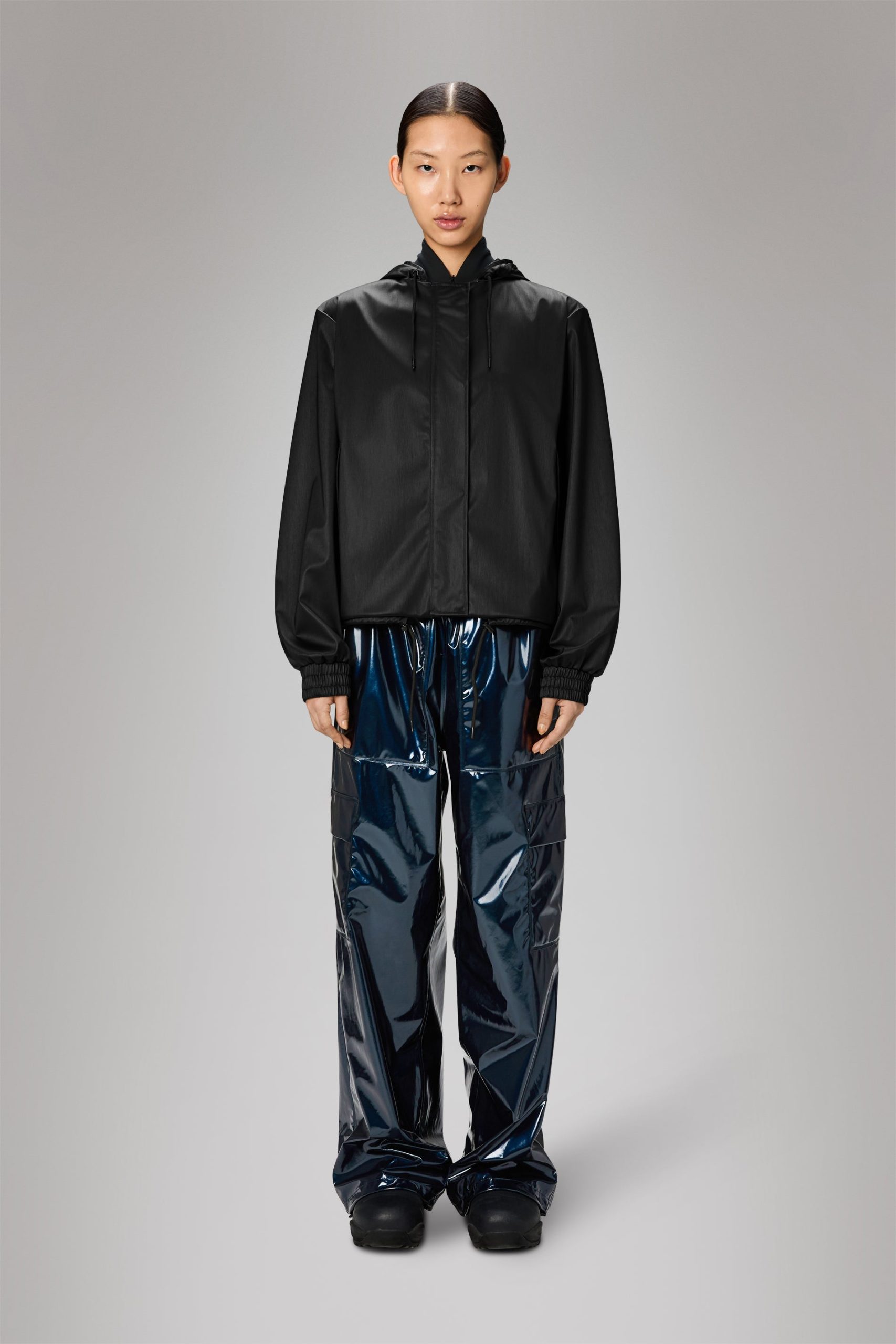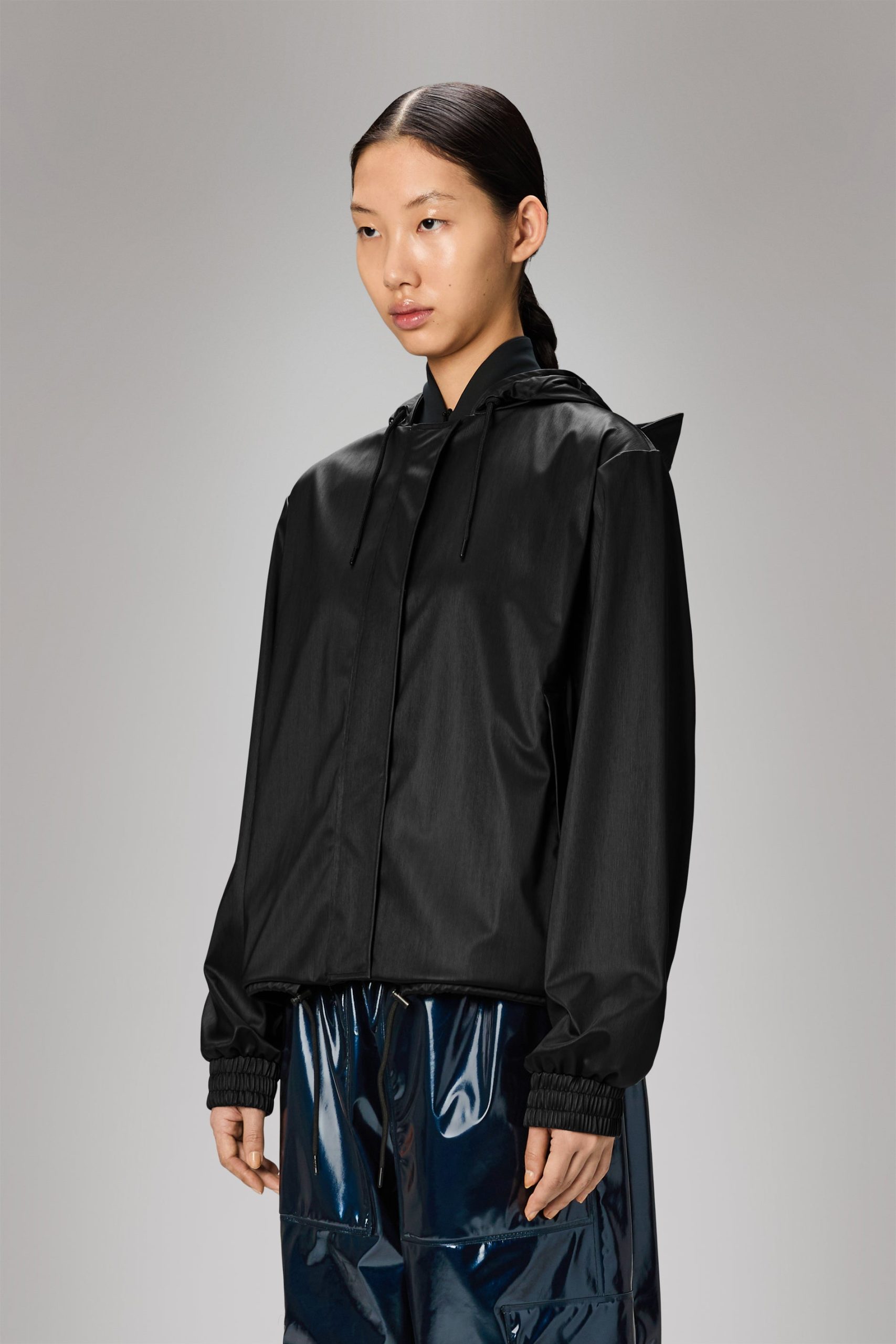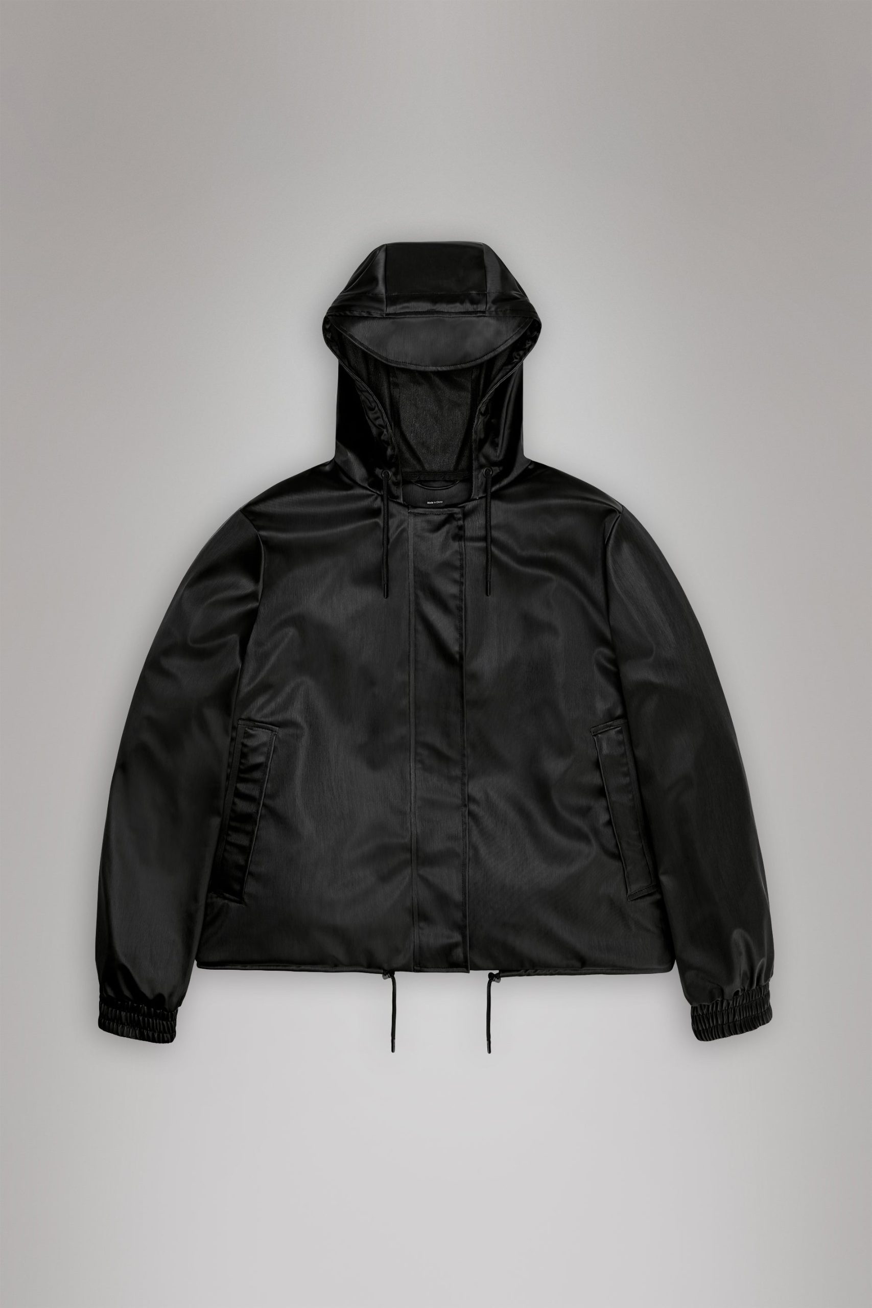 String W Jacket is a women’s rain jacket in a loose and cropped fit. Design is characterized by a luxe-sport aesthetic. String W Jacket features a snap-fastened placket, double welded front pockets and elasticated cuffs for a tighter fit around wrist. Under-arm eyelets ensure ventilation for breathable comfort. This cropped silhouette can be altered through its drawstring hem, while a hood with built-in cap and drawstrings finishes the look. String W Jacket is cut from Rains’ signature PU fabric and features welded seams. The finish is lightweight with a smooth feel.