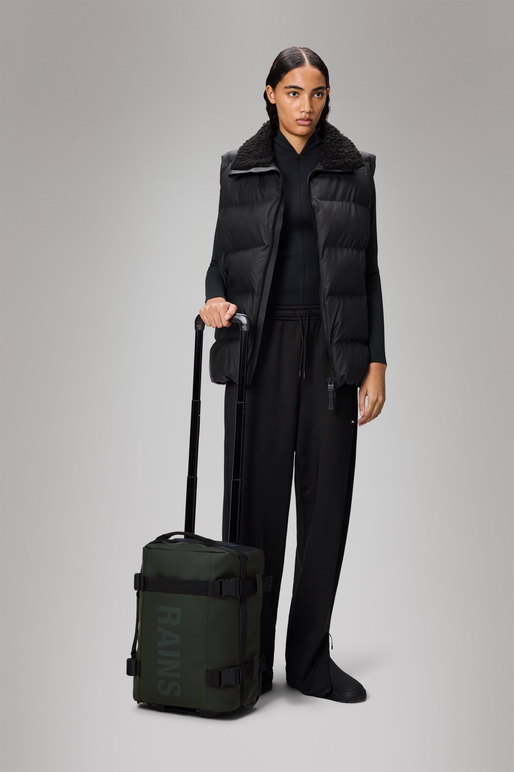 Texel Cabin Bag Mini is Rains’ answer to traveling light. Design is cut from waterproof PU fabric, designed to repel water. Texel Cabin Bag Mini is carefully designed to meet the carry-on dimensions* of most airlines. The compact travel bag is made from waterproof PU fabric and a half-silhouette hard shell for upright stability and durability. Unzip the bi-fold case and find two main compartments with mesh closures. Outside the design is finished with side compression straps and a webbing carry handle. Transportation is made effortless with a comfort telescopic handle** and two noise-free wheels.Texel Cabin Bag Mini is cut from Rains’ signature waterproof PU fabric, engineered for carrying strength, durability, and a smooth feel.*Check with airline.**Bags from Rains’ Texel series feature trolley sleeves, which can be slid over this telescopic handle for easy transportation.