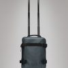 Texel Cabin Bag Mini is Rains’ answer to traveling light. Design is cut from waterproof PU fabric, designed to repel water. Texel Cabin Bag Mini is carefully designed to meet the carry-on dimensions* of most airlines. The compact travel bag is made from waterproof PU fabric and a half-silhouette hard shell for upright stability and durability. Unzip the bi-fold case and find two main compartments with mesh closures. Outside the design is finished with side compression straps and a webbing carry handle. Transportation is made effortless with a comfort telescopic handle** and two noise-free wheels.Texel Cabin Bag Mini is cut from Rains’ signature waterproof PU fabric, engineered for carrying strength, durability, and a smooth feel.*Check with airline.**Bags from Rains’ Texel series feature trolley sleeves, which can be slid over this telescopic handle for easy transportation.