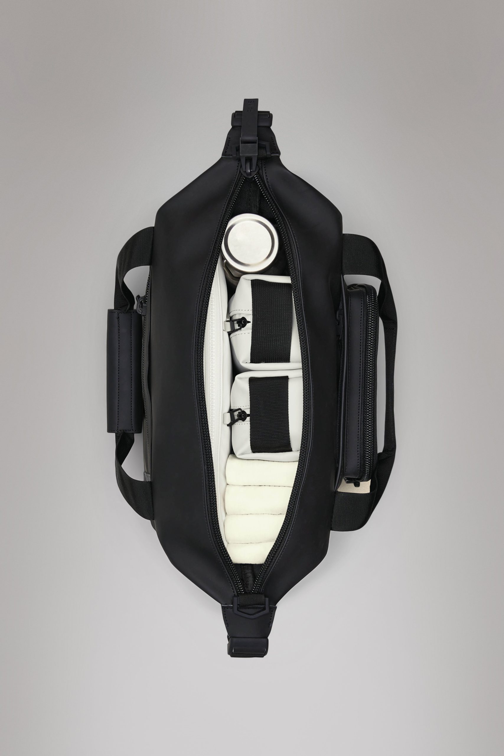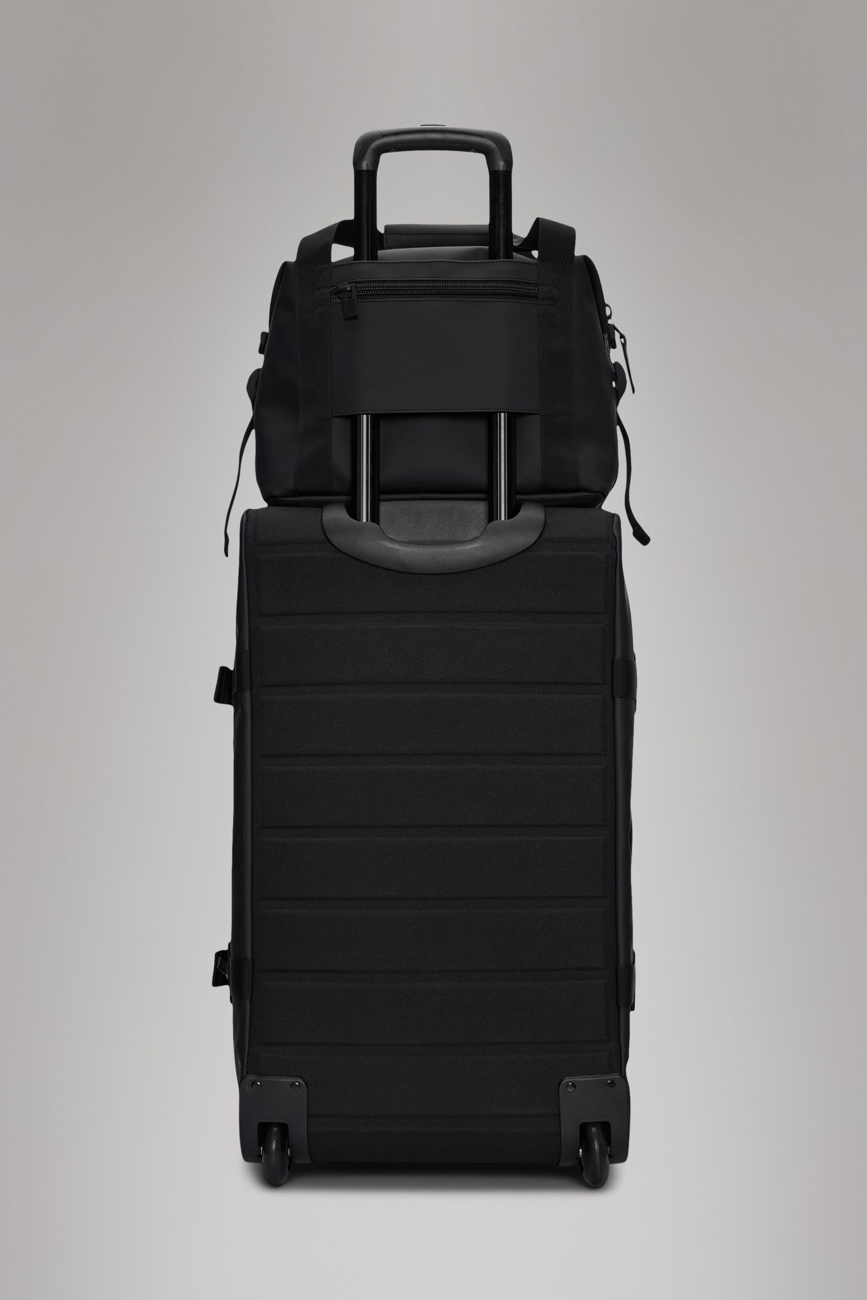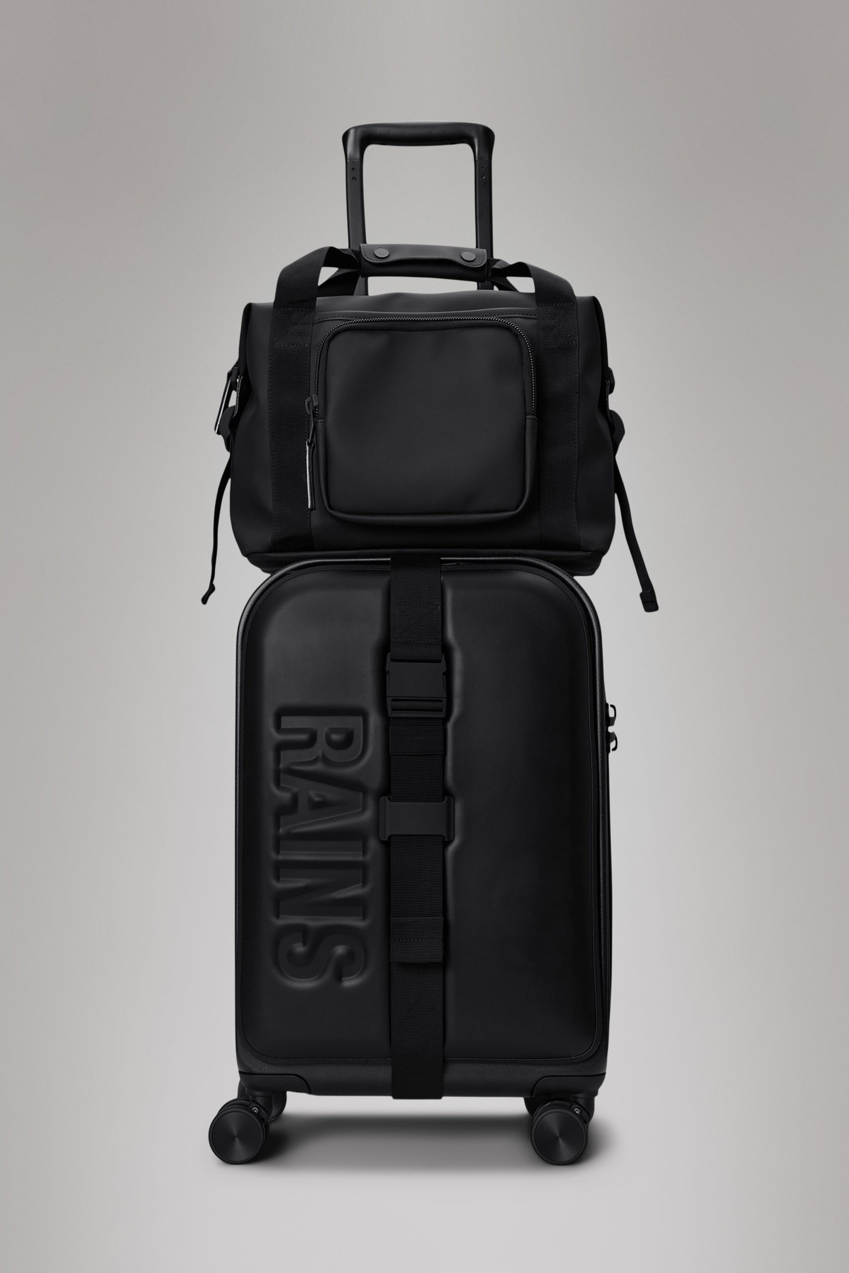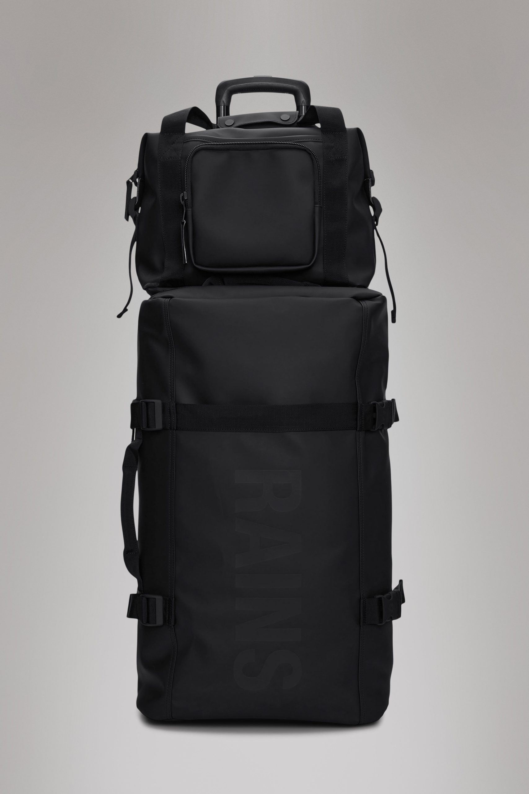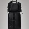 Texel Kit Bag is a compact utility bag designed to hold essentials for short trips. Design is cut from waterproof PU fabric, designed to repel rain.Texel Kit Bag is a waterproof design characterized by its multiple storage options. The main compartment holds mesh and zip pockets and a padded divide for easy organization. The bag has a utility feel, underlined by its strap details and front pocket, ideal for keys, airpods and smaller essentials. Design is finished with a detachable shoulder strap and side compression straps, keeping belongings in place. A back-mounted trolley sleeve, with zip pocket, allows the bag to be slid onto telescopic trolley handles for easy transportation.* Texel Kit Bag is cut from Rains’ signature waterproof PU fabric, engineered for carrying strength, durability, and a smooth feel.*Sized to fit Texel Cabin Trolley and Texel Cabin Bag. May not fit trolley bags from other manufacturers.