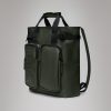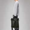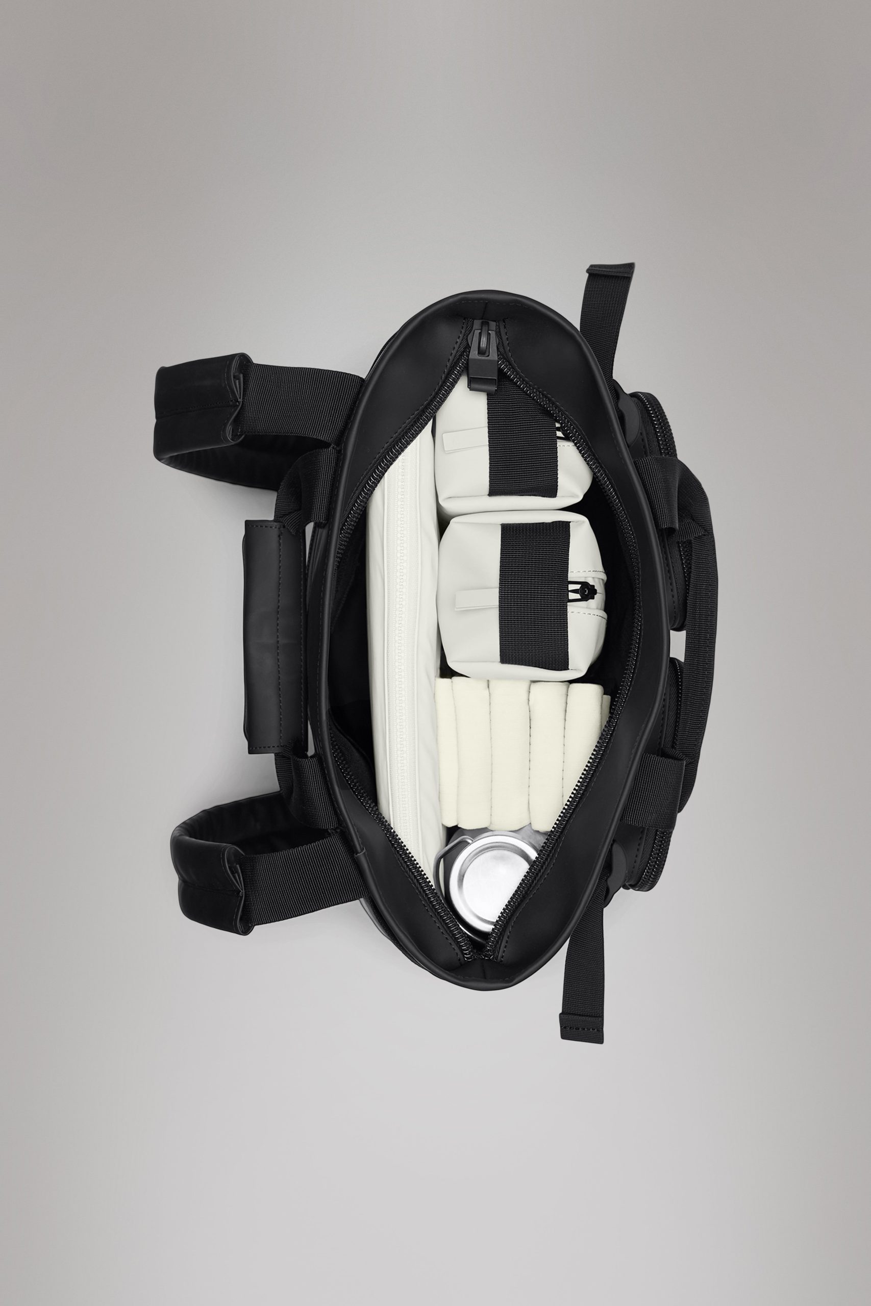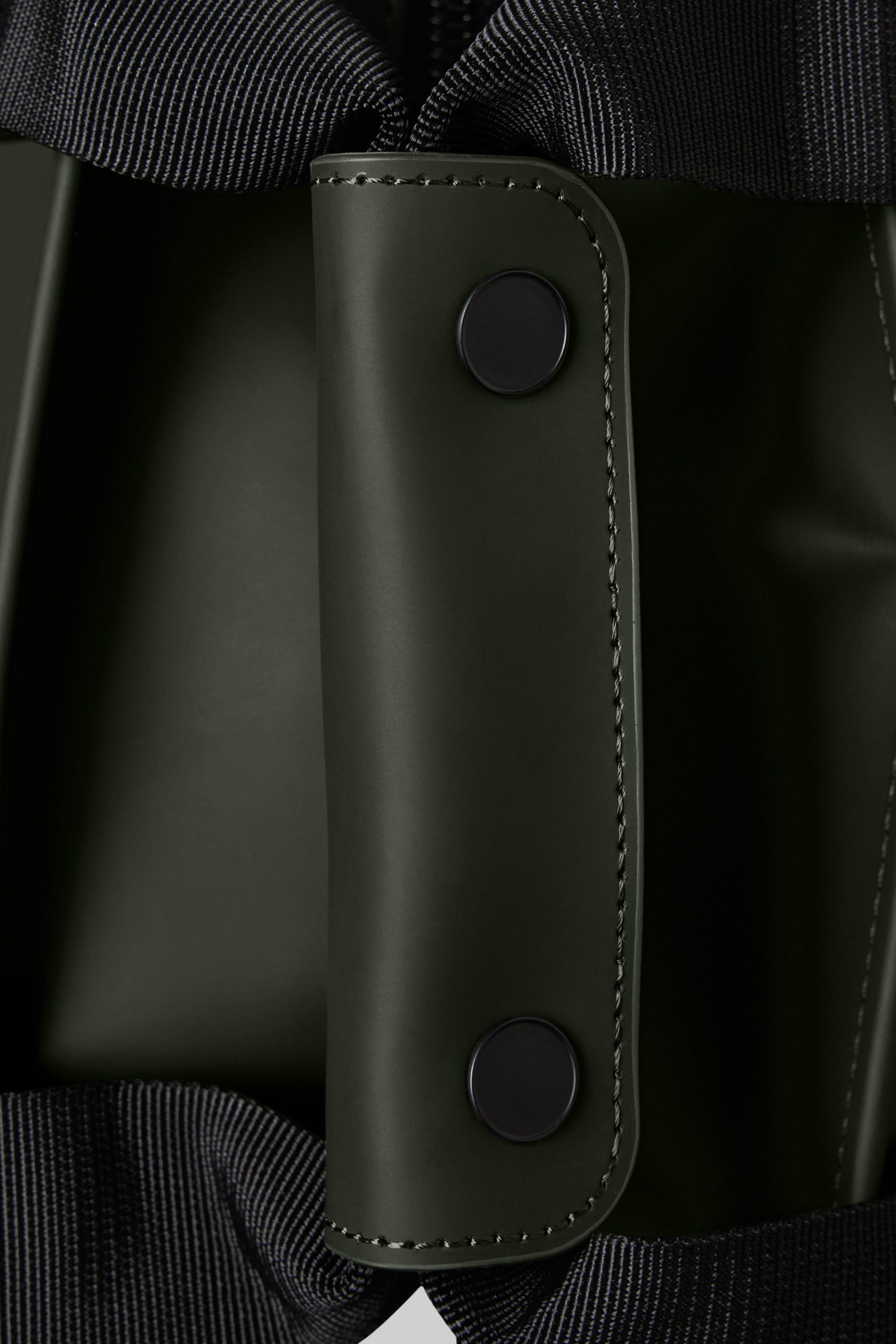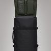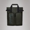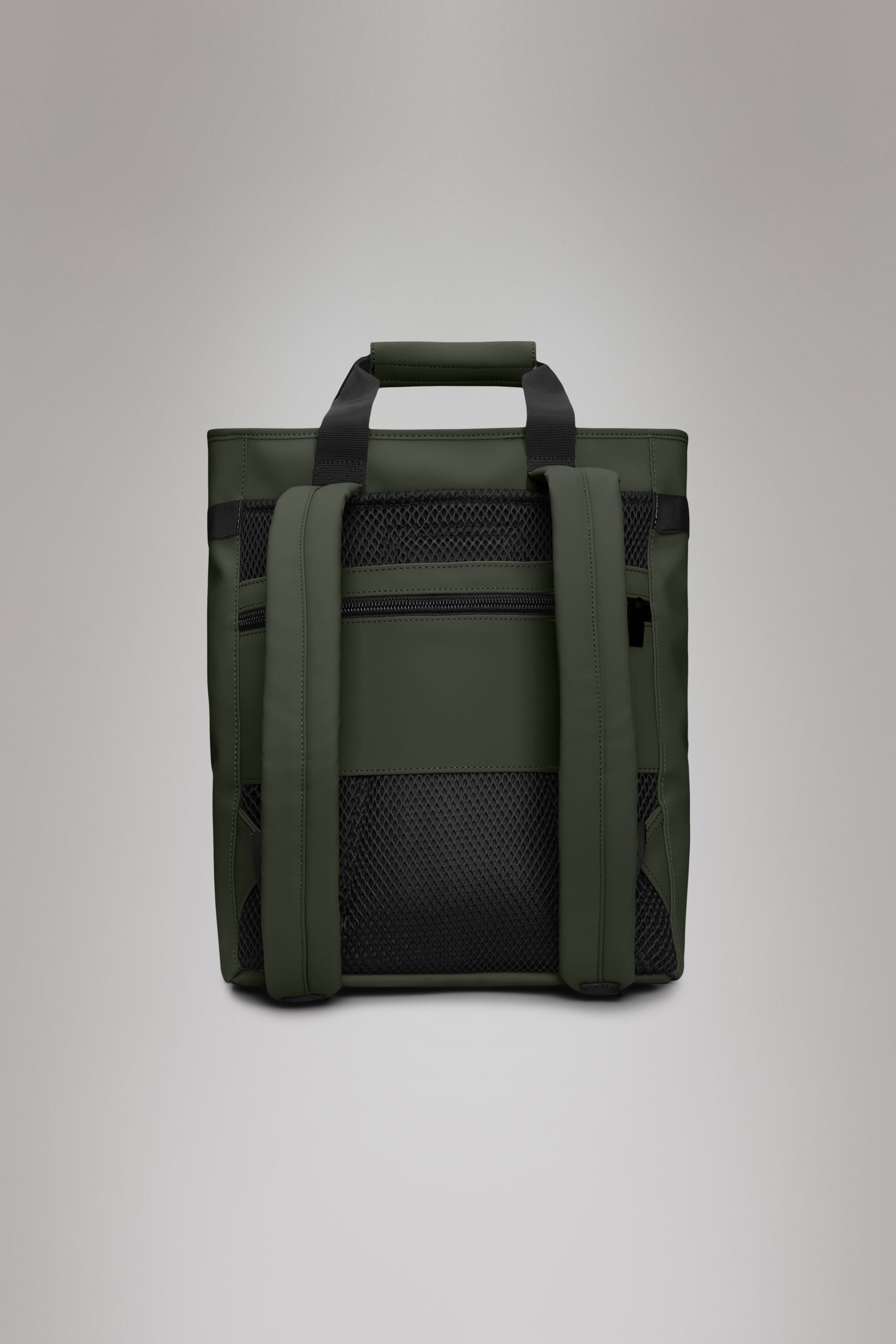 Texel Tote Backpack is a hybrid utility bag with a padded laptop sleeve designed for short travels. It is cut from waterproof PU fabric, designed to repel rain. Texel Tote Backpack doubles as a waterproof tote and backpack, worn via adjustable padded shoulder straps. Unzip the bag to reveal a spacious main compartment with mesh and zip pockets and a padded laptop sleeve for 15” laptops.On the outside, two front utility pockets are ideal for passports, chargers, and other small items. The design is finished with webbing carry handles and side compression straps. A back-mounted trolley sleeve, with zip pocket, allows the bag to be slid onto telescopic trolley handles for easy transportation.* Design is finished off with a padded mesh back panel for comfort. Texel Tote Backpack is cut from Rains’ signature waterproof PU fabric, engineered for carrying strength, durability, and a smooth feel.*Sized to fit Texel Cabin Trolley and Texel Cabin Bag. May not fit trolley bags from other manufacturers.