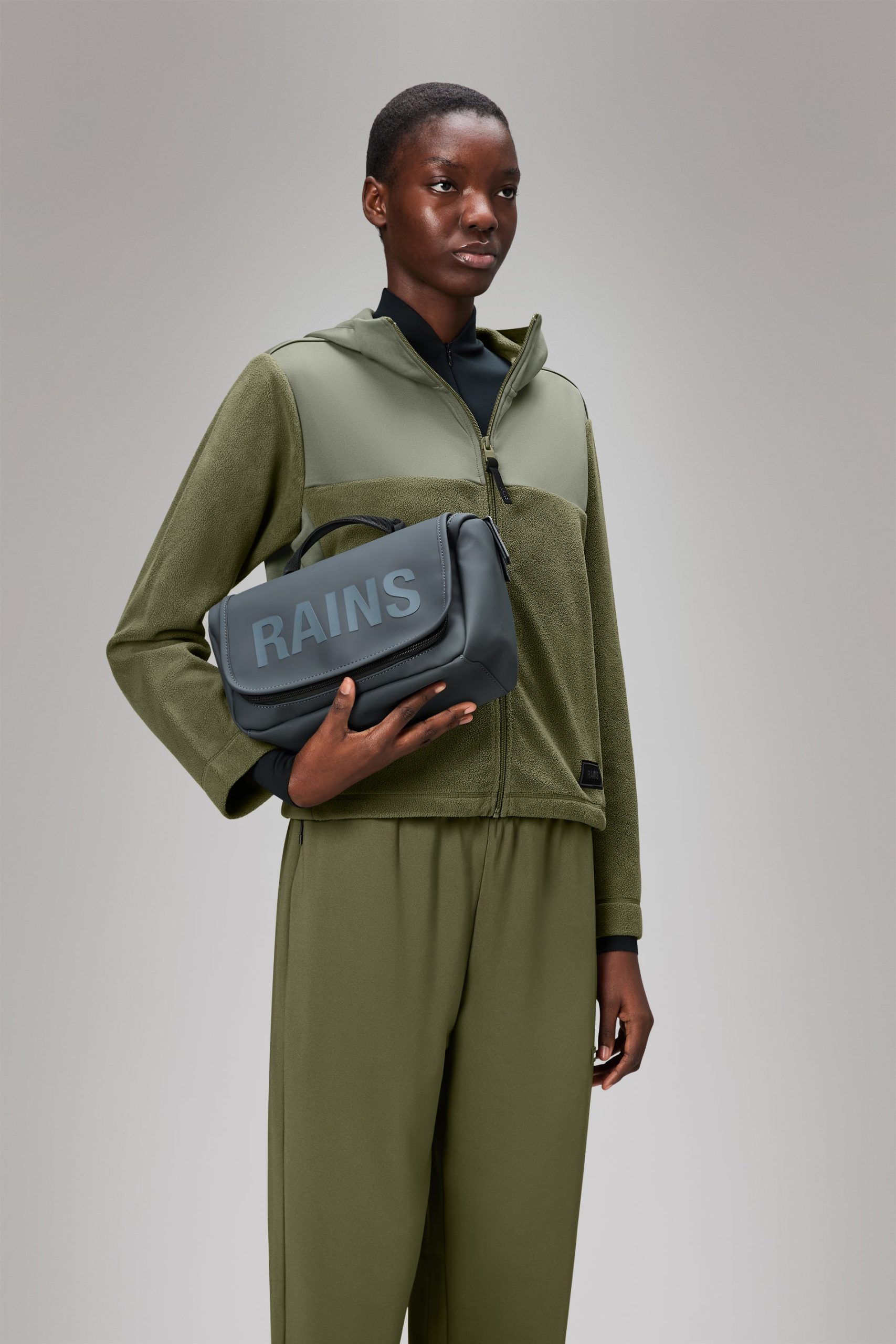Texel Wash Bag is a highly functional toiletry bag designed with space for all bathroom essentials. Open the zipped bi-fold cover to reveal a main compartment, with two slip pockets and an elastic storage band for small travel bottles. The folded cover houses two zip pockets and a fold-out hanger, allowing the bag to be hung open for easy access. The design is finished with a padded carry handle. Texel Wash Bag is characterized by its ideal size which provides an extra option when organizing things in your weekend bag or suitcase when traveling. Texel Wash Bag is cut from Rains’ signature waterproof PU fabric, engineered for carrying strength, durability, and a smooth feel.
