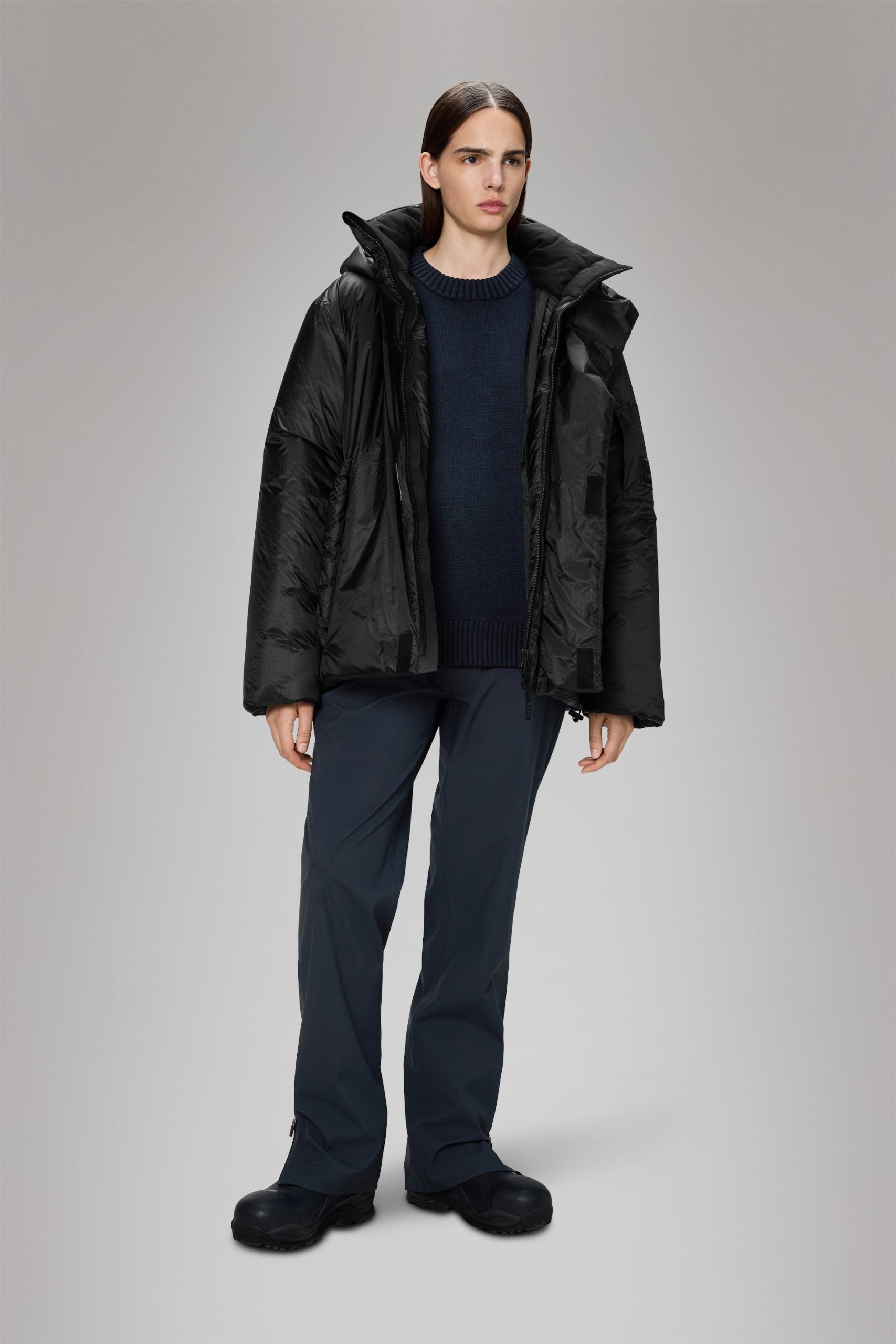 Torna Insulated Jacket is an insulated winter jacket in a relaxed fit. Characterized by a luxe-sport aesthetic and glossy branding details. Torna Insulated Jacket features asymmetrical welt pockets and an elastic string adjustment at hem. Topped off by an insulated hood with elastic string adjustment. Design is made with a loose top-layer of nylon-ripstop. The relaxed silhouette is completed with a semi-transparent and soft matte finish. This luxe-sport winter jacket is cut from durable and waterproof nylon-ripstop, keeping you winter-ready and protected from cold, windchill and moderate rainfall.