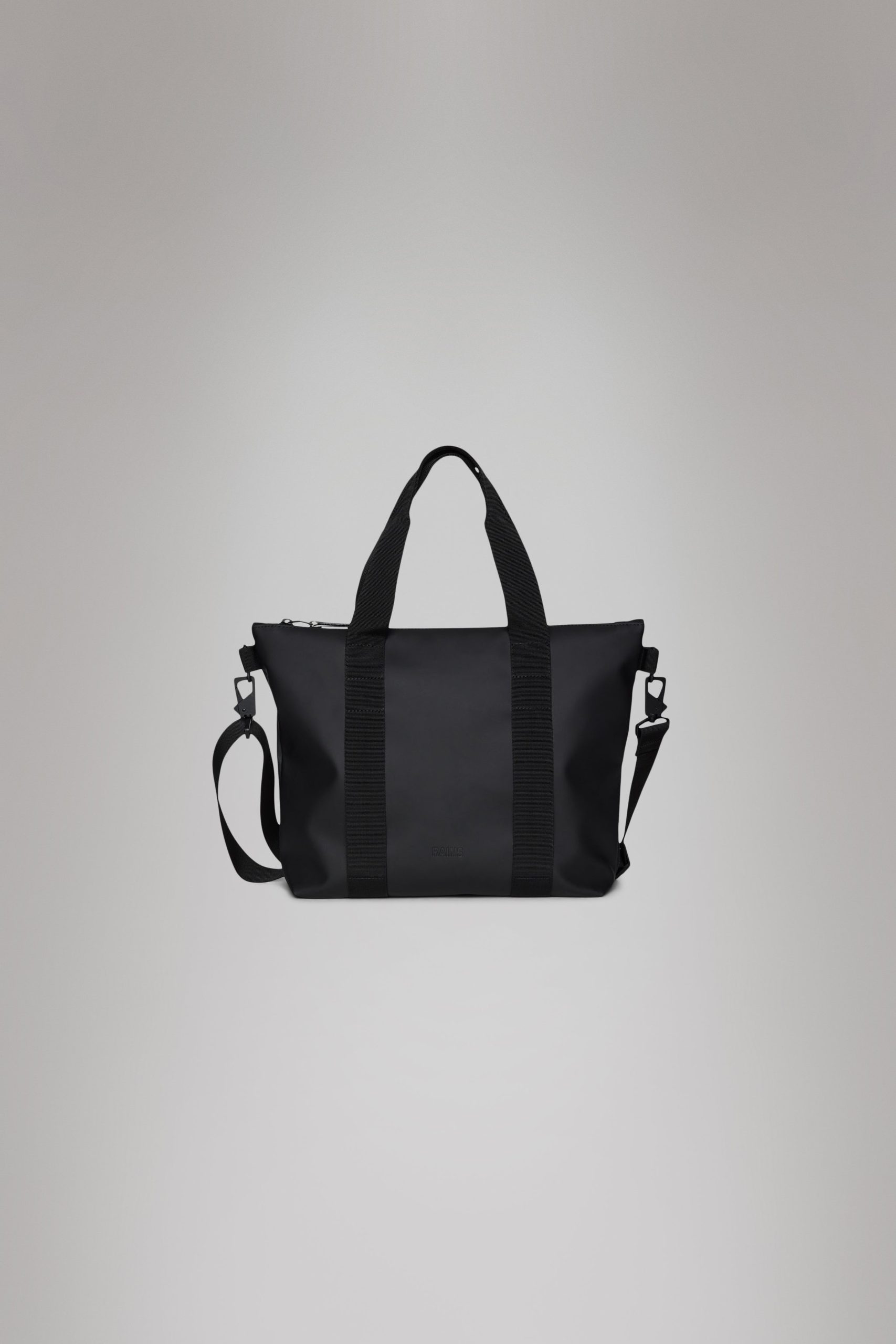 Tote Bag Micro is a waterproof tote perfect for shopping, commutes or the office. Characterized by an elevated utility-look and functional details. The full-length coated zip reveals a single main compartment for everyday essentials. Designed to meet your carry-need, Tote Bag Micro offers various carrying options through its detachable shoulder strap and webbing carry handles. Carry handles features attachment rings for small items like keys.Tote Bag Micro is cut from Rains’ signature PU fabric, engineered for carrying strength, durability and a smooth feel.