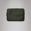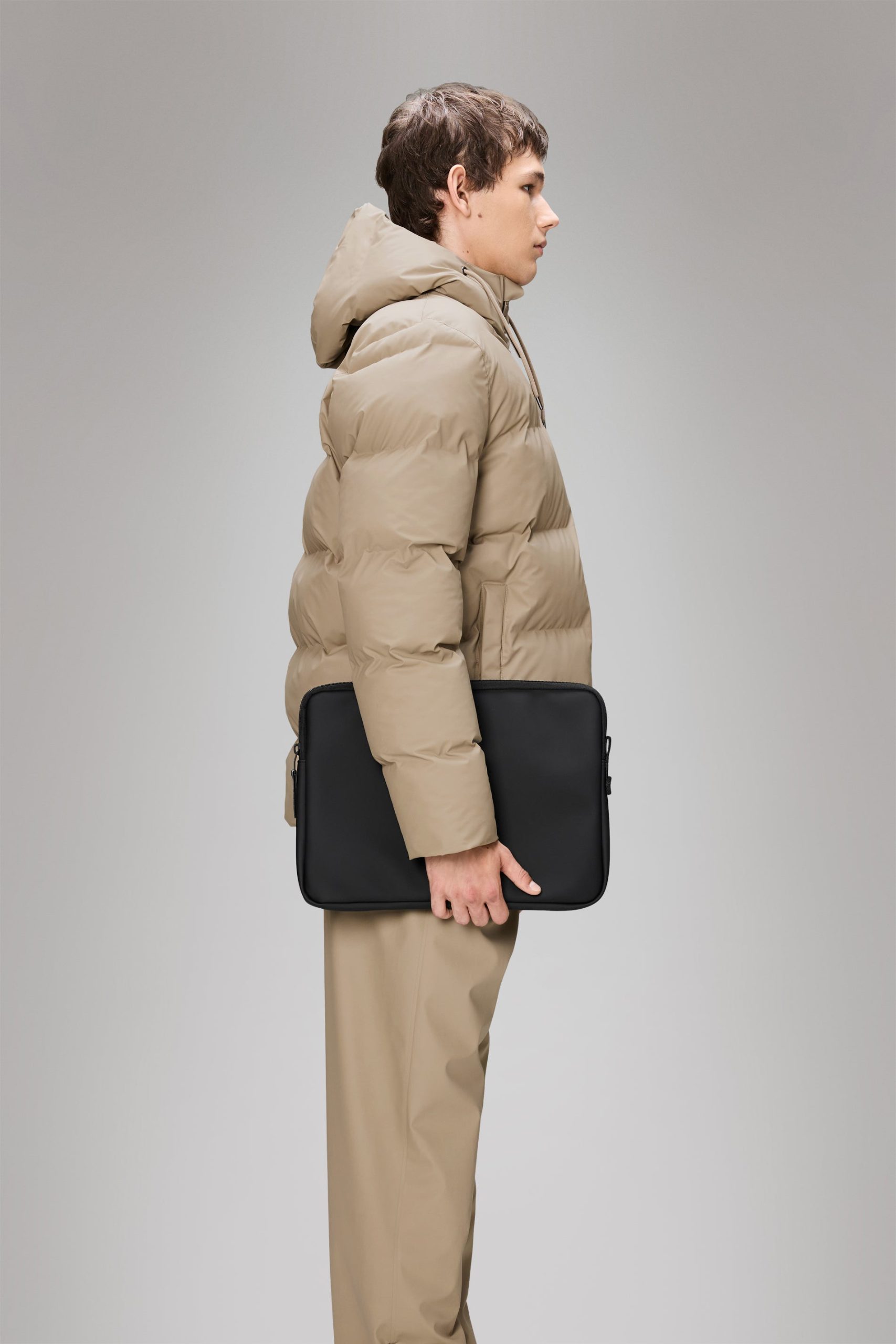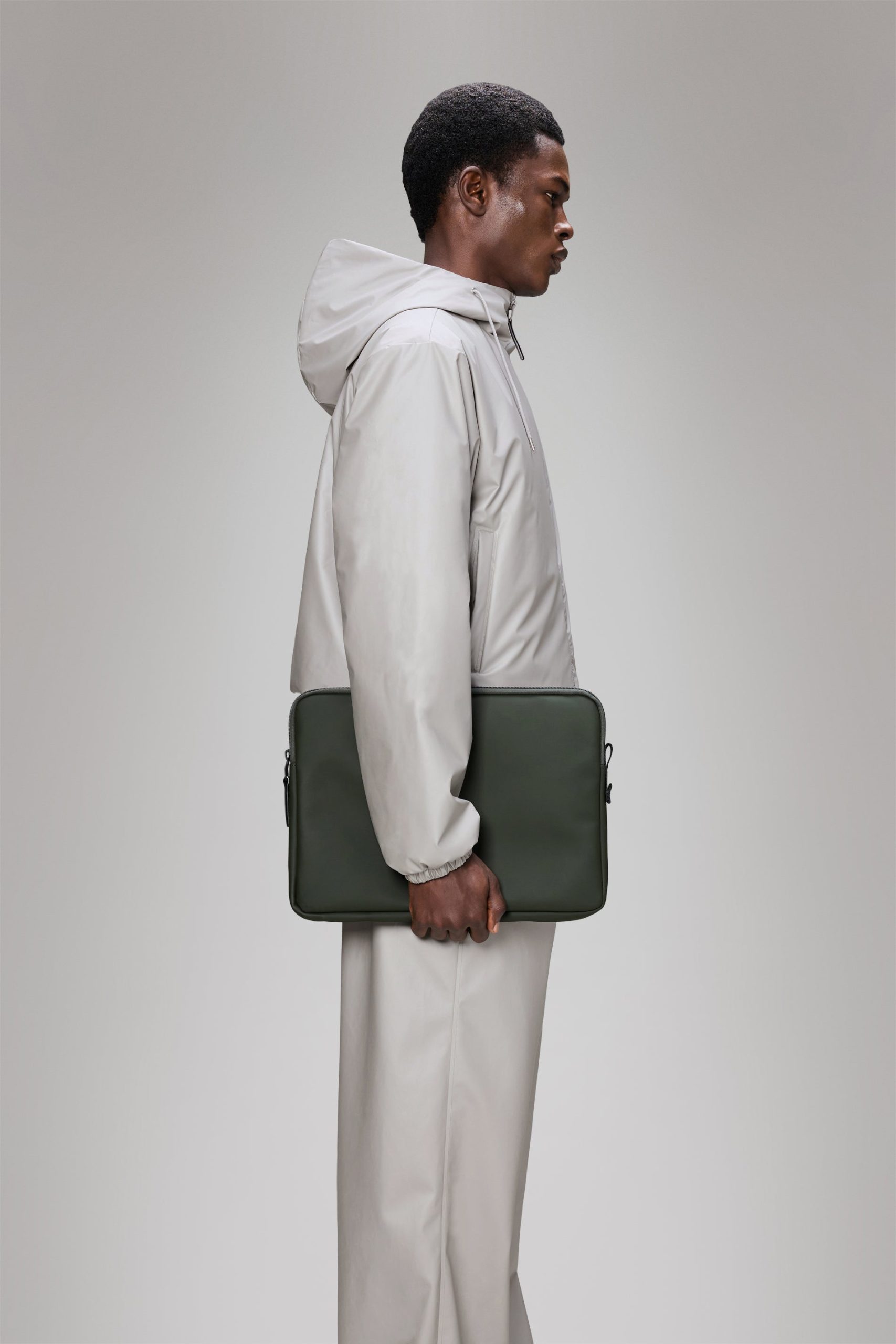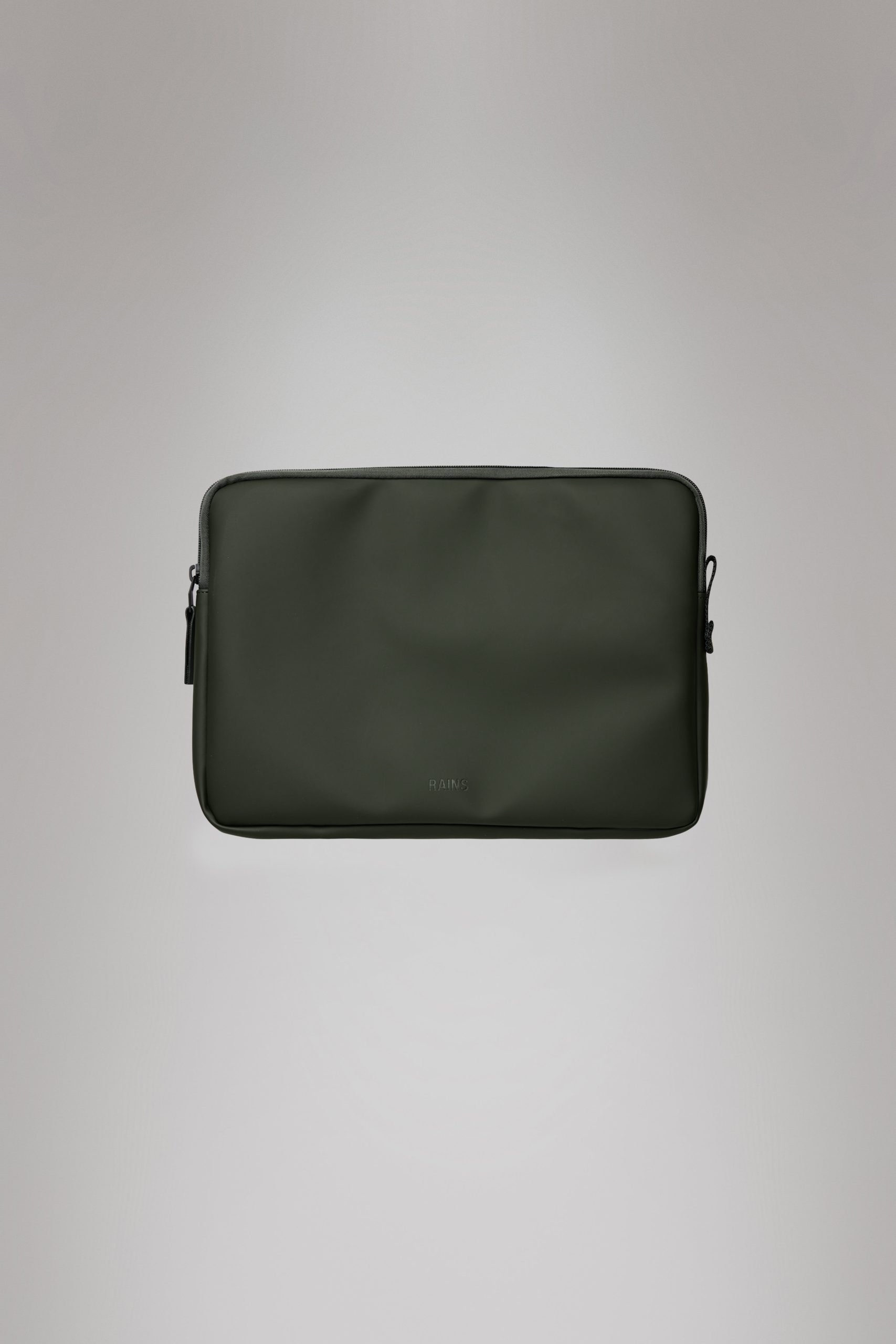 Trail Laptop Case is a streamlined and reliable case designed to get tech safely from point A to Z when commuting. Characterized by a minimal silhouette.This sleeve is padded for protection with a microfibre-lined main compartment, creating a protective layer for 16 laptops. This clean and contemporary design features a coated tonal zip closure and a sturdy logo-jacquard webbing loop. Trail Laptop Case is cut from Rains’ signature PU fabric, engineered for carrying strength, durability and a smooth feel.