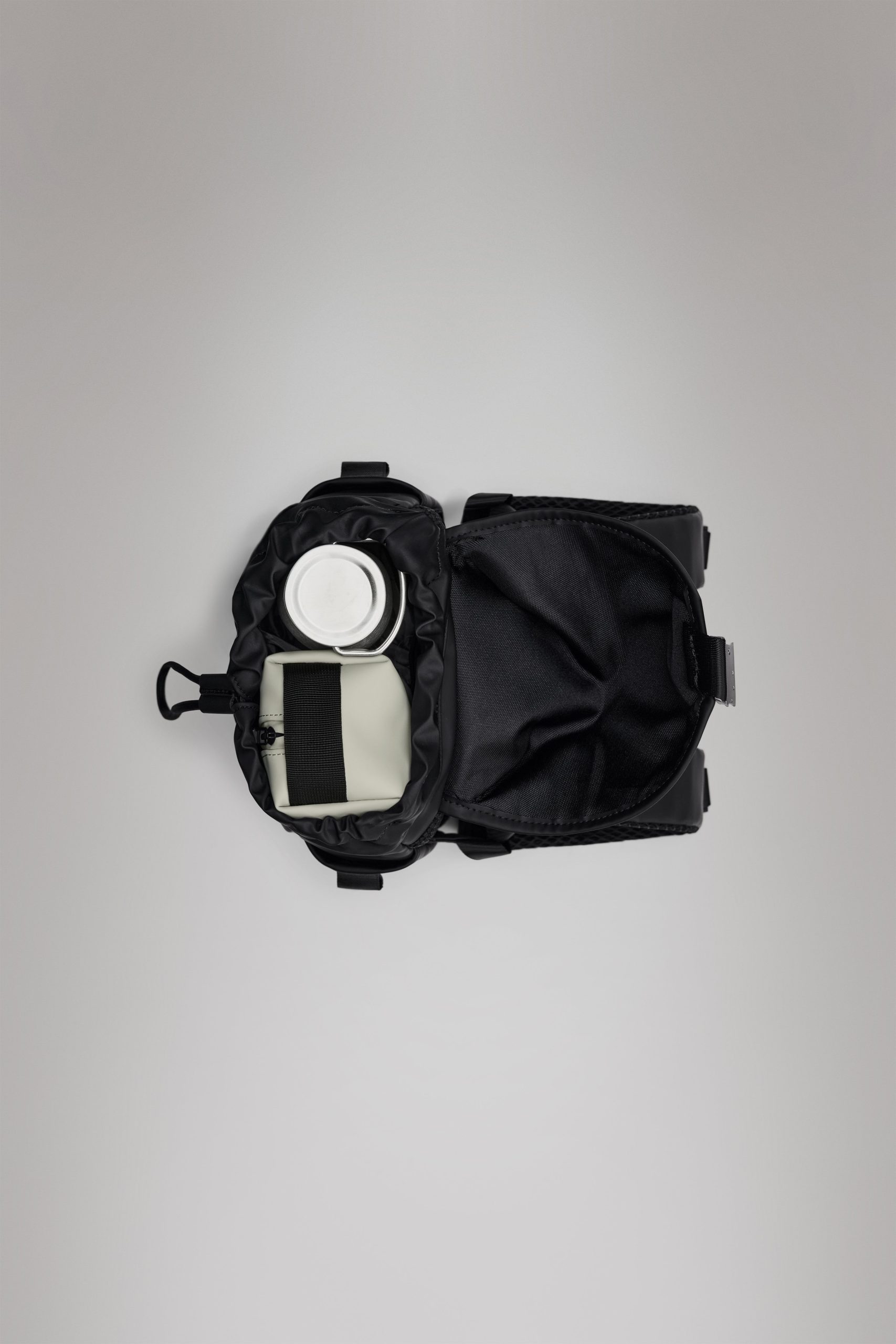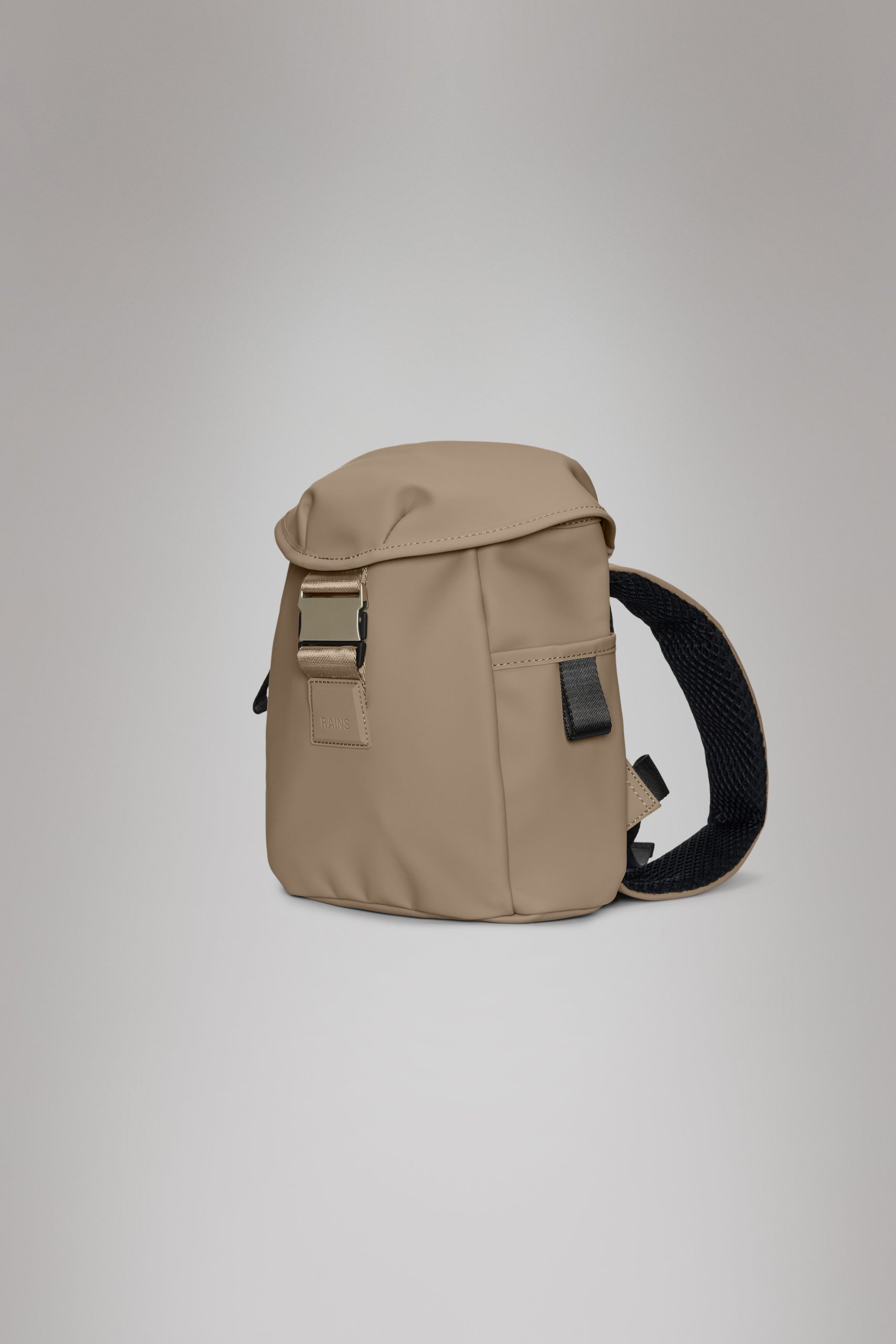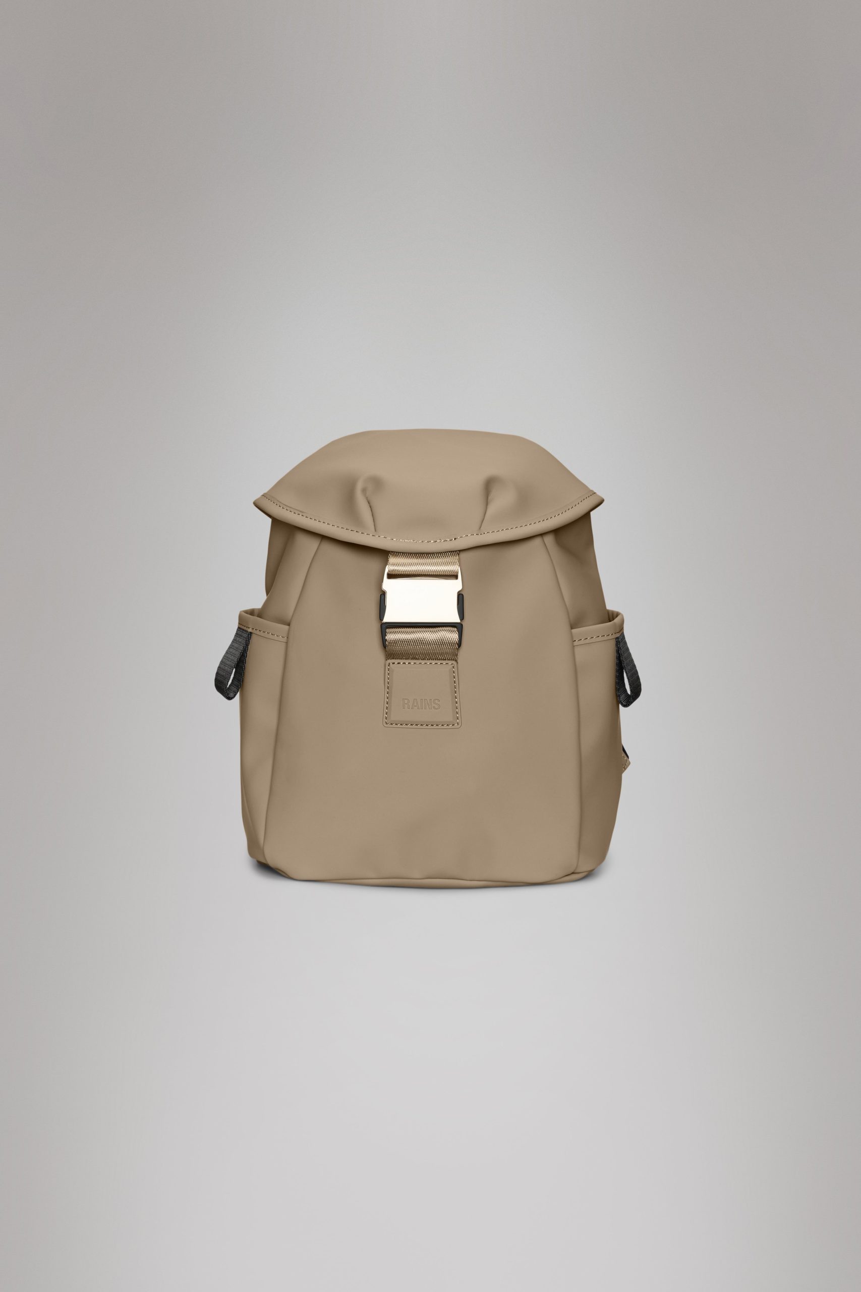 Valera Bucket Backpack Mini is a soft backpack with rounded shapes in a compact mini-size. This design is a downscaled version of the Valera Bucket Backpack. It’s a mini, yet spacious enough to hold personal essentials, keys and small tech. Open the buckle, flap and drawstring closure to reveal a main compartment with a slip pocket.On the outside Valera Bucket Backpack Mini features padded adjustable shoulder straps and a padded mesh back panel for breathable comfort. The backpack is cut from Rains’ signature PU fabric with coating on a softer backside. Design has a relaxed aesthetic, yet great durability and well-known waterproof performance.