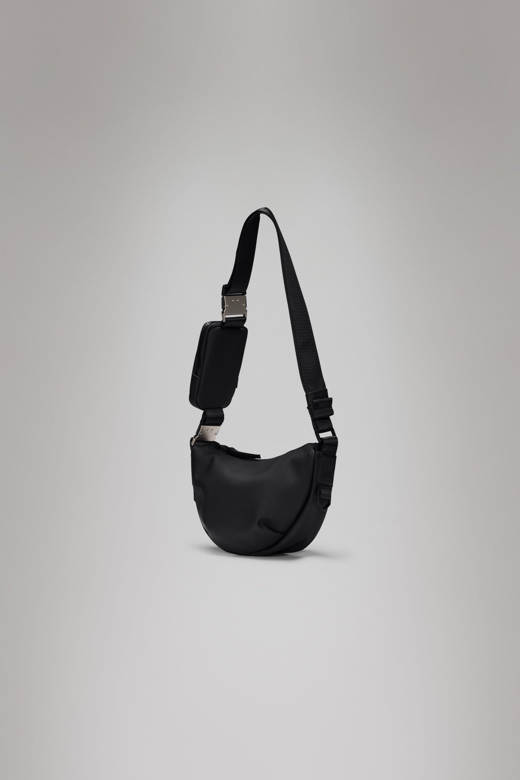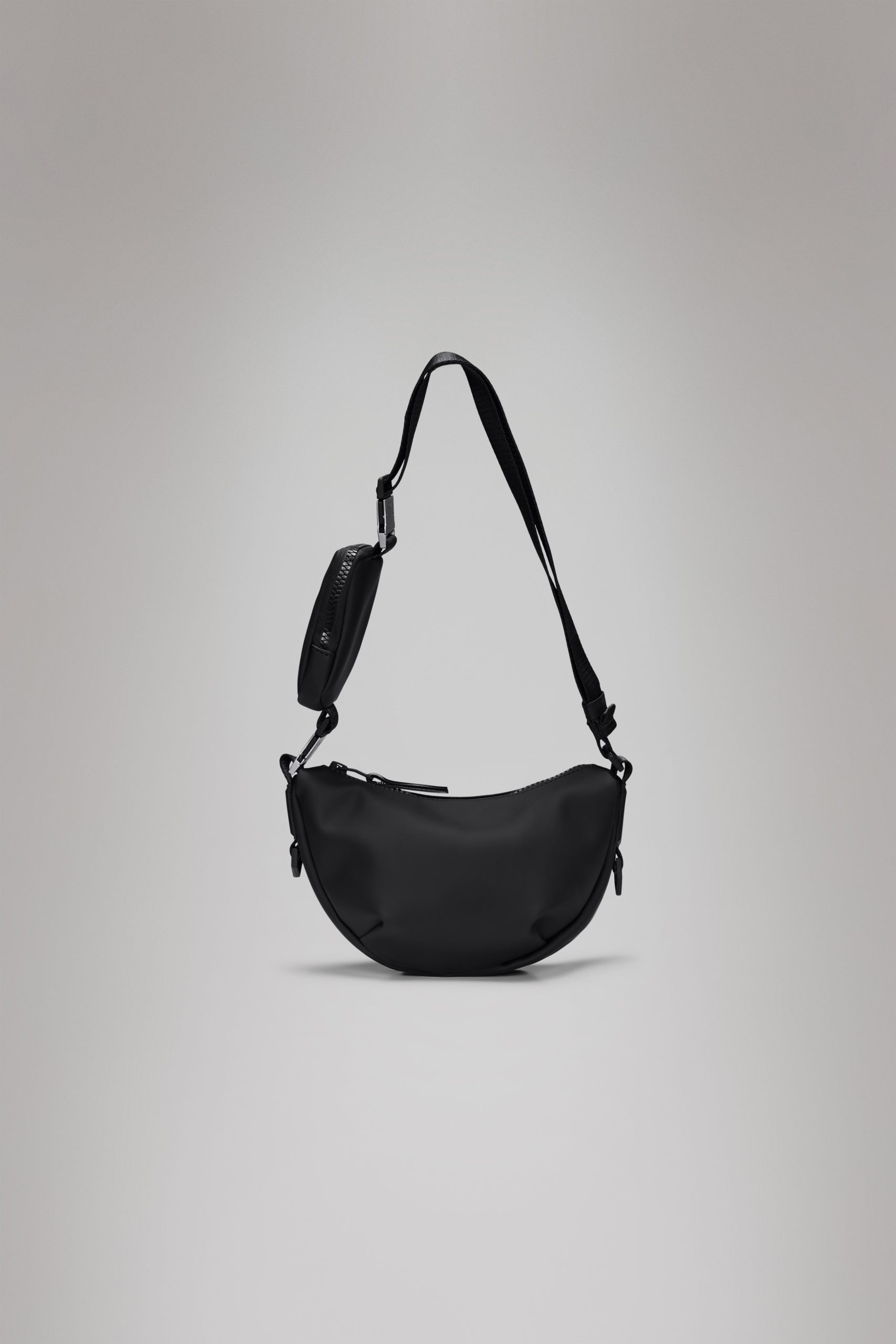 Valera Shoulder Bag Mini has a soft shape that drapes beautifully when worn over the shoulder or crossbody.Valera Shoulder Bag Mini is defined by its compact size that fits perfectly into daily life. Open the coated zipper to enter a main compartment with a simple slip pocket for small valuables. Wear this Valera design over the shoulder, crossbody or as a handbag.The design features an adjustable shoulder strap with a contrast color insert and a small zipped pouch. Simply clip on the detachable part for a pop of contrast – or remove it for a more clean look. Brushed silver hardware, paired with silicone branding details gives an elevated edge to the soft look and feel.Valera Shoulder Bag Mini is cut from Rains’ signature PU fabric with coating on a softer backside. Design has a relaxed aesthetic, yet great durability and well-known waterproof performance.